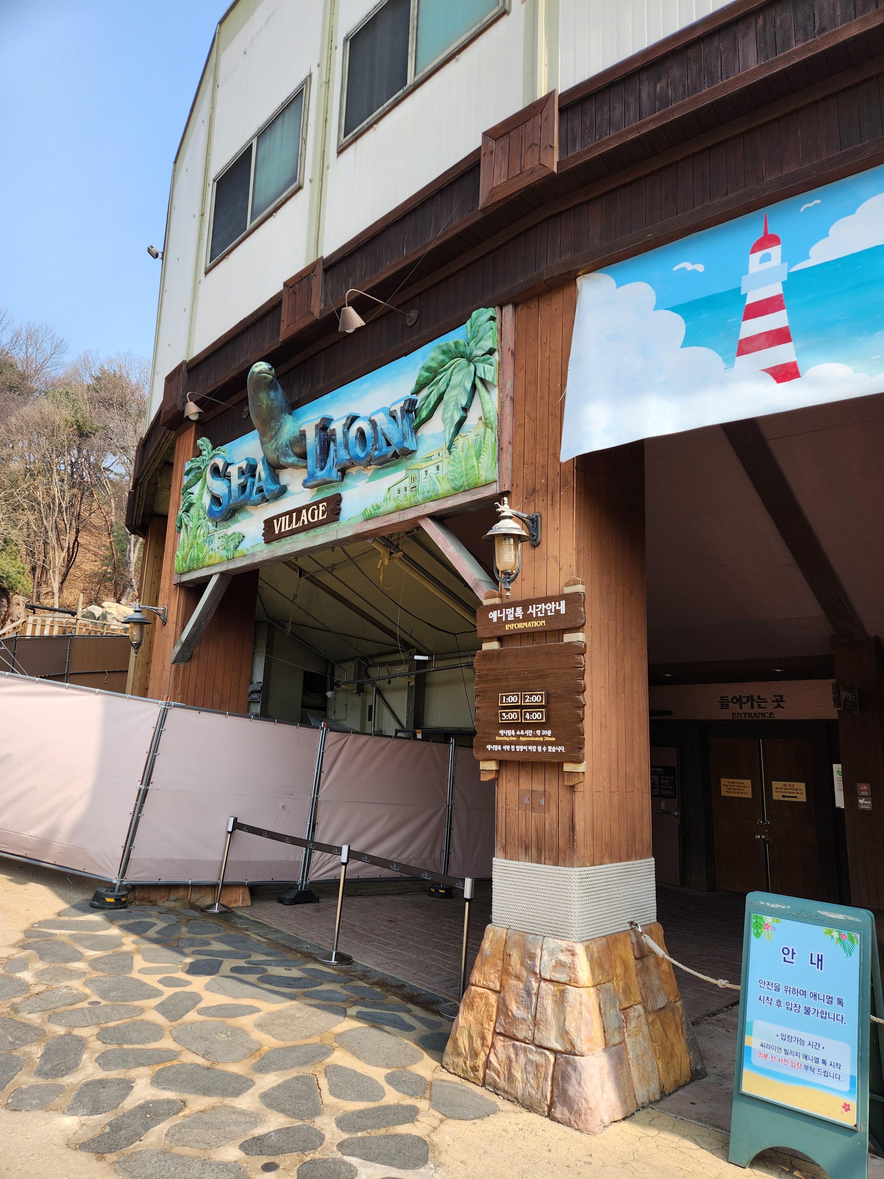 호랑이 바로 밑쪽에서는 애니멀톡이라고 바다사자 공연을 볼 수 있다. 1시부터 시작해서 1시간 단위로 진행되며 선착순으로 입장하는 것 같다. 내부가 워낙 커서 못 들어갈 일은 없을 것 같지만 좋은 자리를 위해서는 미리 자리 잡는 게 좋다.