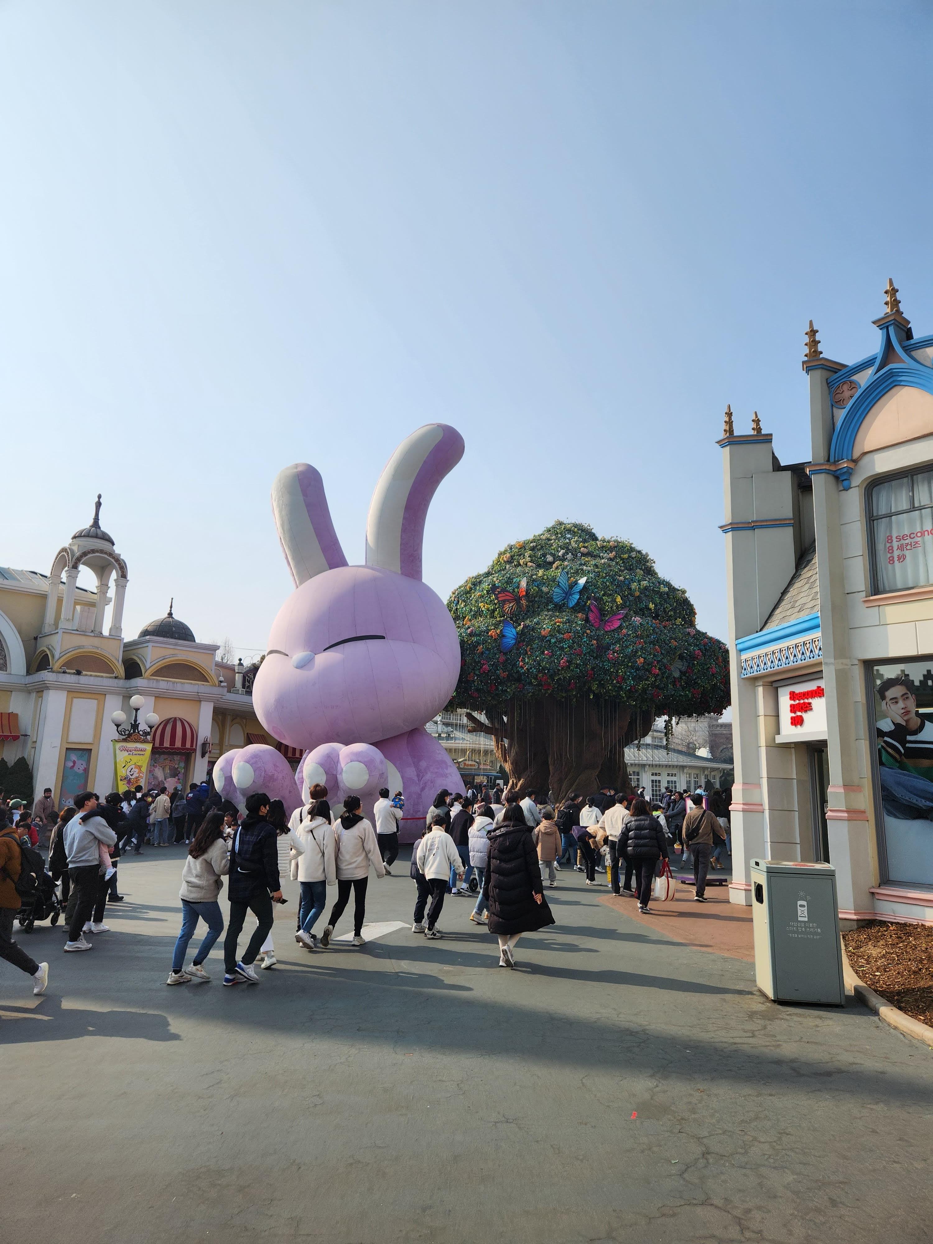 요즘 대형 토끼가 생겨서 포토스폿이 하나 더 생겼다. 아래에 보이는 큰 나무가 원래 포토스폿인데 이제 토끼에서 더 사진을 많이 찍는 것 같다. 우리 아들은 별로 관심이 없었다.