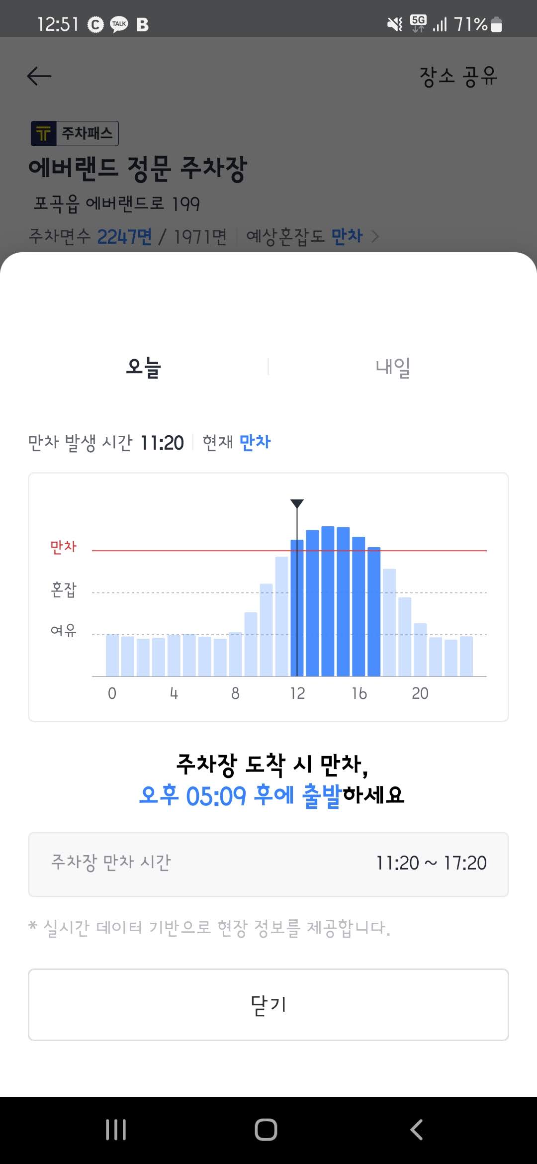 아래 카카오 T 주차장을 보면 만차 예정 시간 등 자세한 안내가 되어 있어서 참고하면 좋다.