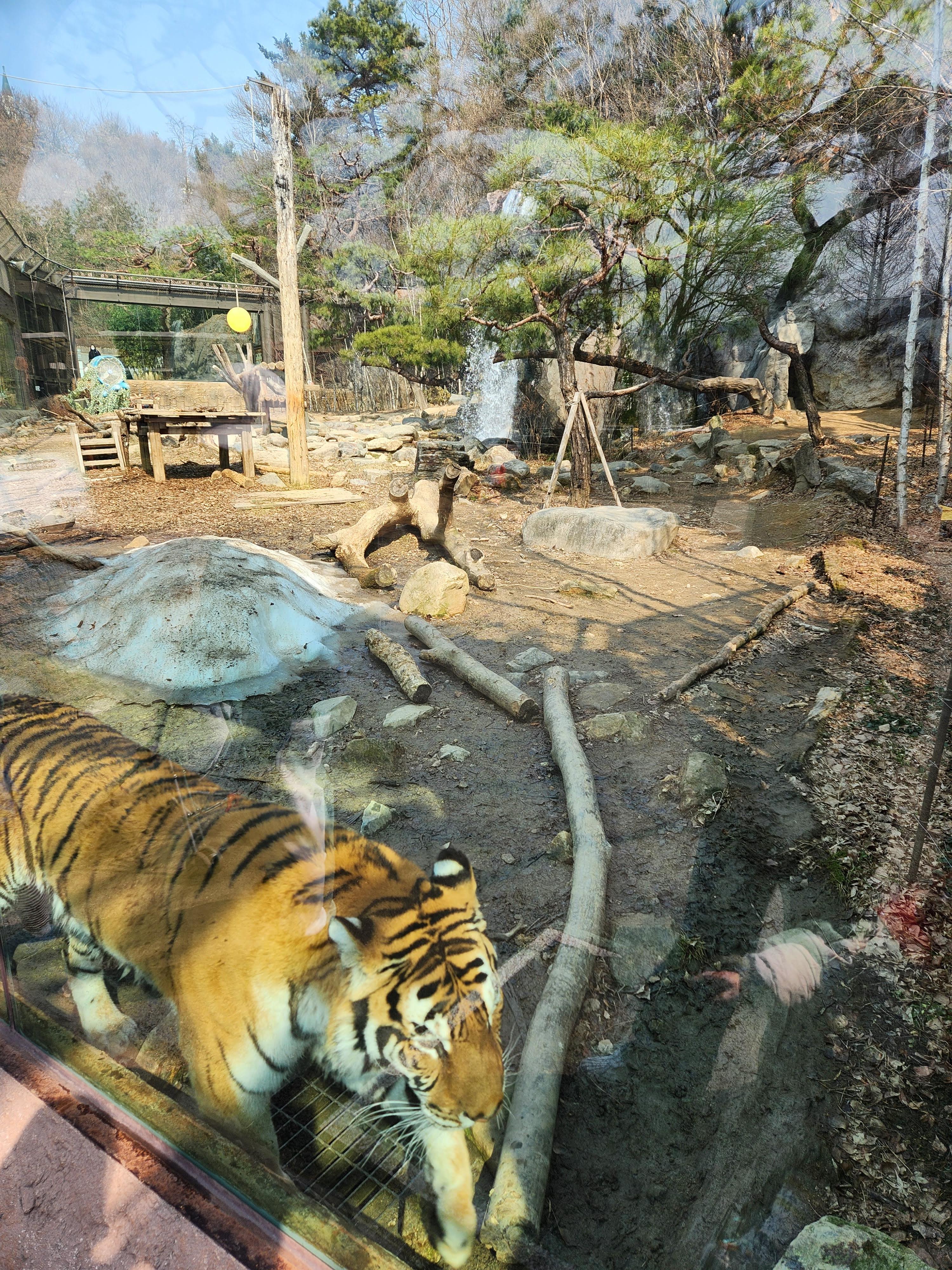 사파리를 예약하지 못했다고 아쉬움이 남을 때는 항상 호랑이를 보면 해소가 좀 될 것이다. 사파리 내에도 있지만 판다월드를 따라 쭉 내려오다 보면 동물원 쪽에 호랑이가 있다. 올 때마다 느끼는 것이지만 이 호랑이는 알아서 왔다 갔다 하면서 골고루 잘 보여주는 것 같다.