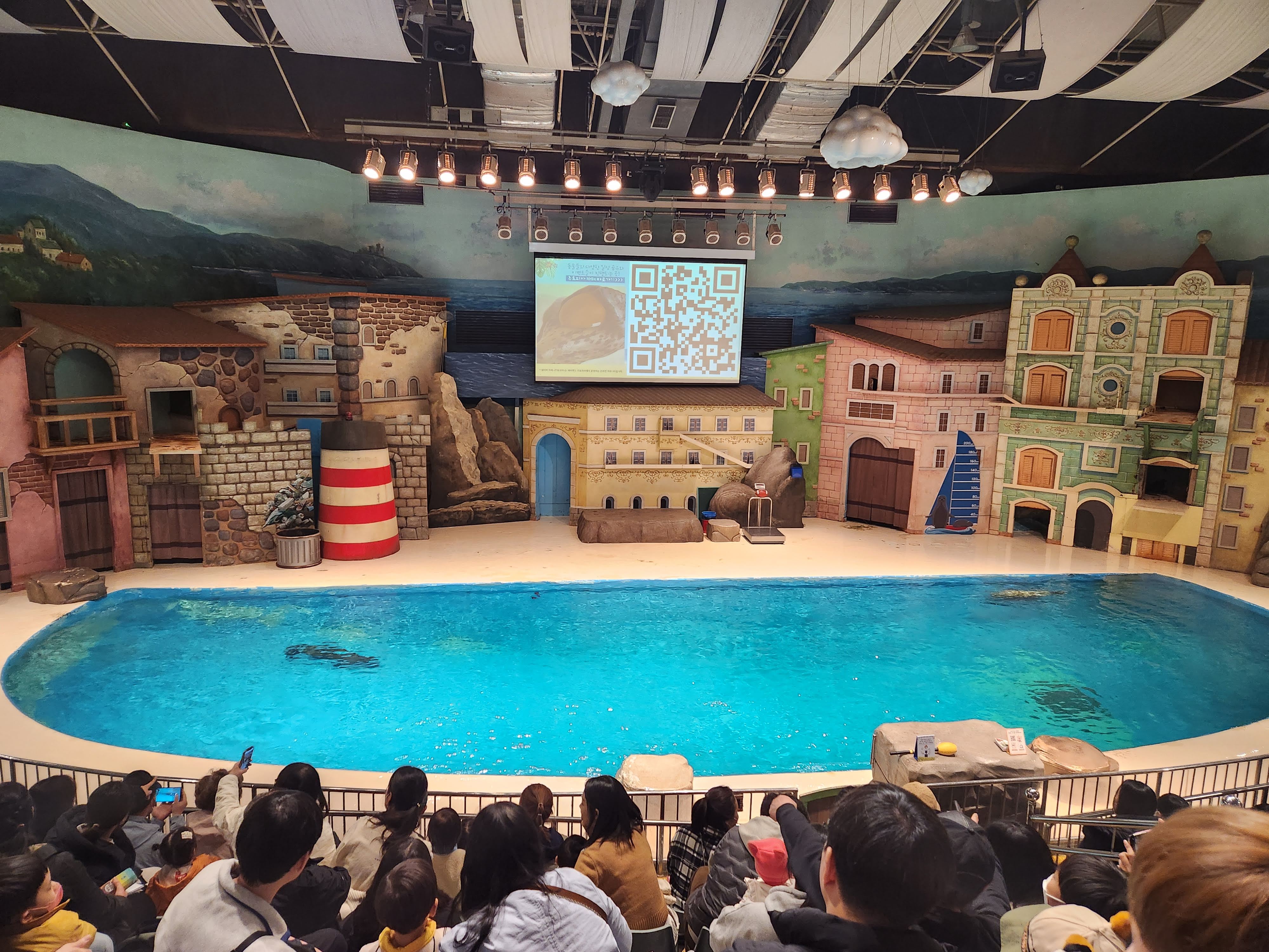 이렇게 공연장이 있고 바다사자들이 나와서 재롱을 부린다. 가까이서 봐야 좀 더 실감 나는 것 같은데 그래도 멀리서 봐도 꽤나 재미있게 보았다. 물론 조금 보다 보면 아이는 흥미를 잃어서 중도포기하기 마련이다.
