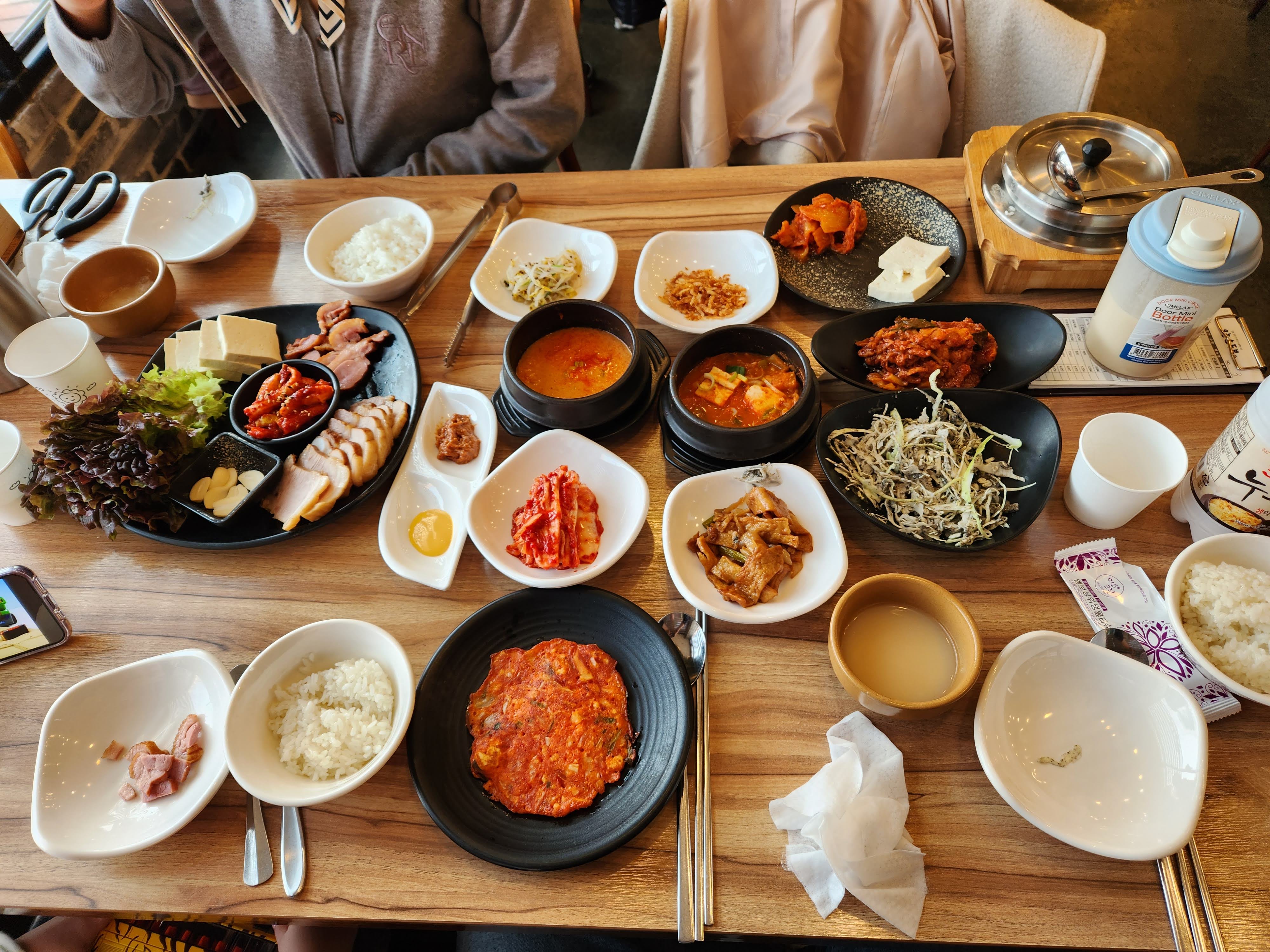 에버랜드에서 불태우고 나면 항상 배가 고프다. 근처 손두부 집에서 정식을 시켜 먹었다. 매우 만족하였다. 청국장, 된장찌개, 제육볶음, 보쌈, 두부, 오리고기, 각종 반찬. 피해 갈 수 없는 한식 조합이다.