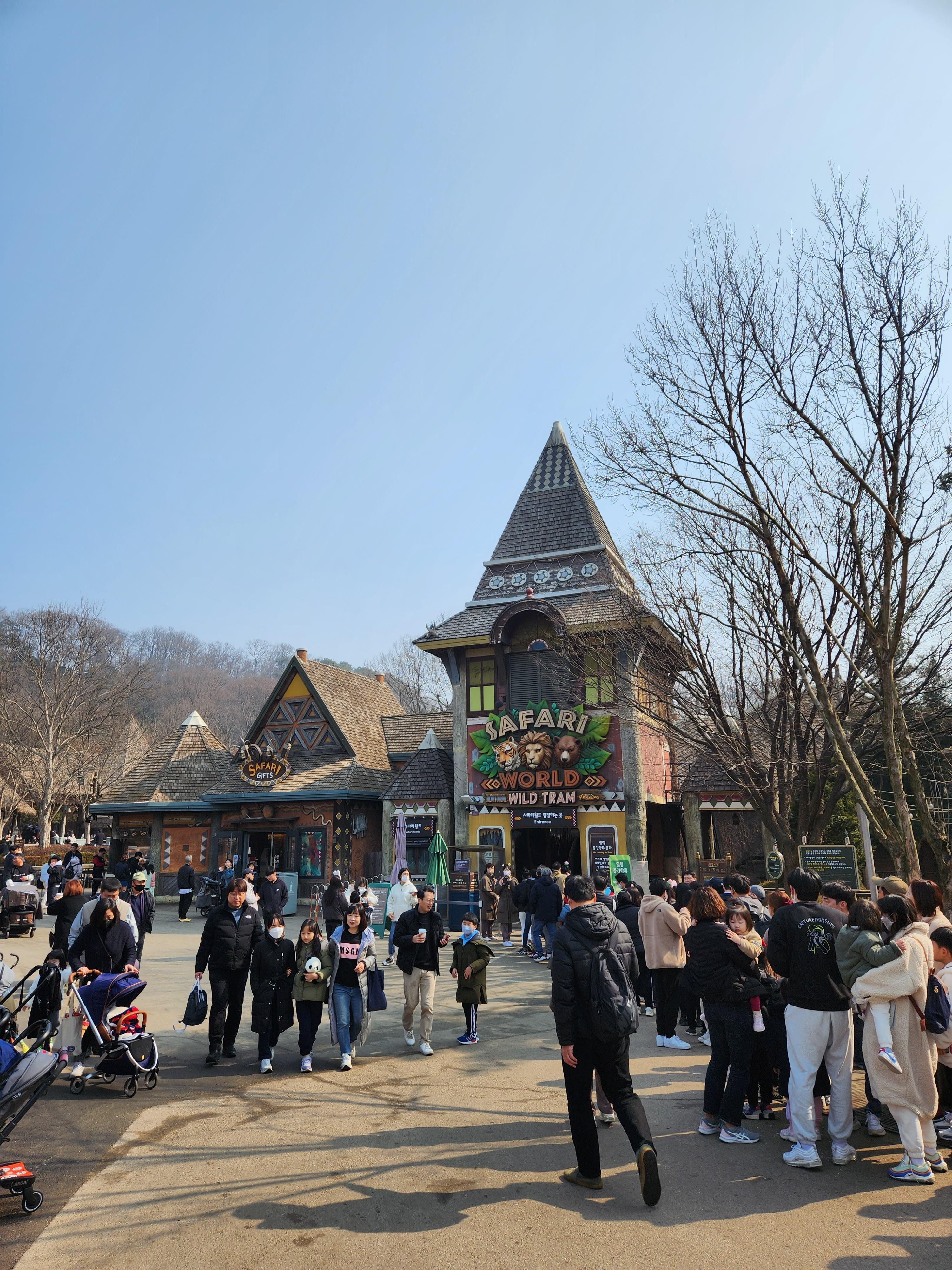 일단 입장하고 특별히 위쪽에서 할 게 없으면 바로 스카이크루즈를 타고 내려가는 것을 추천한다. 최대한 동선을 아끼고 체력을 비축해 놓아야 오랫동안 재미있게 놀 수 있다. 왼쪽으로 가면 동물원, 오른쪽으로 가면 놀이기구를 탄다고 보면 된다.