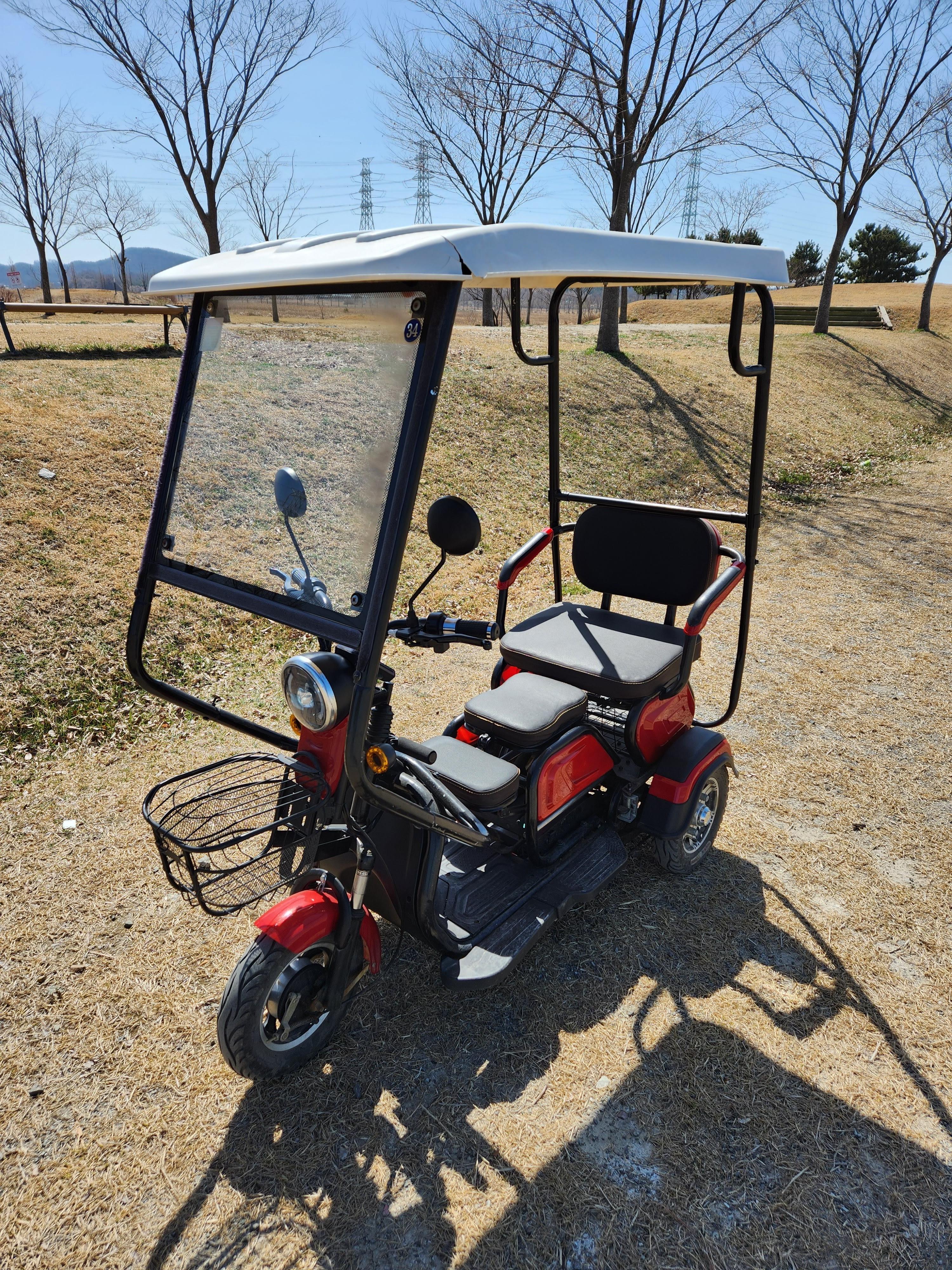 우리가 탑승한 전동바이크이다. 원래 2인용인 것 같은데 맨 앞에 조그마한 의자가 있고 거기에 아이를 태우면 3인 탑승이 가능하다. 날씨가 다소 추워서 오픈된 형태로 타니깐 조금 추웠는데 아예 자동차처럼 막혀있는 전동바이크들도 있었다.