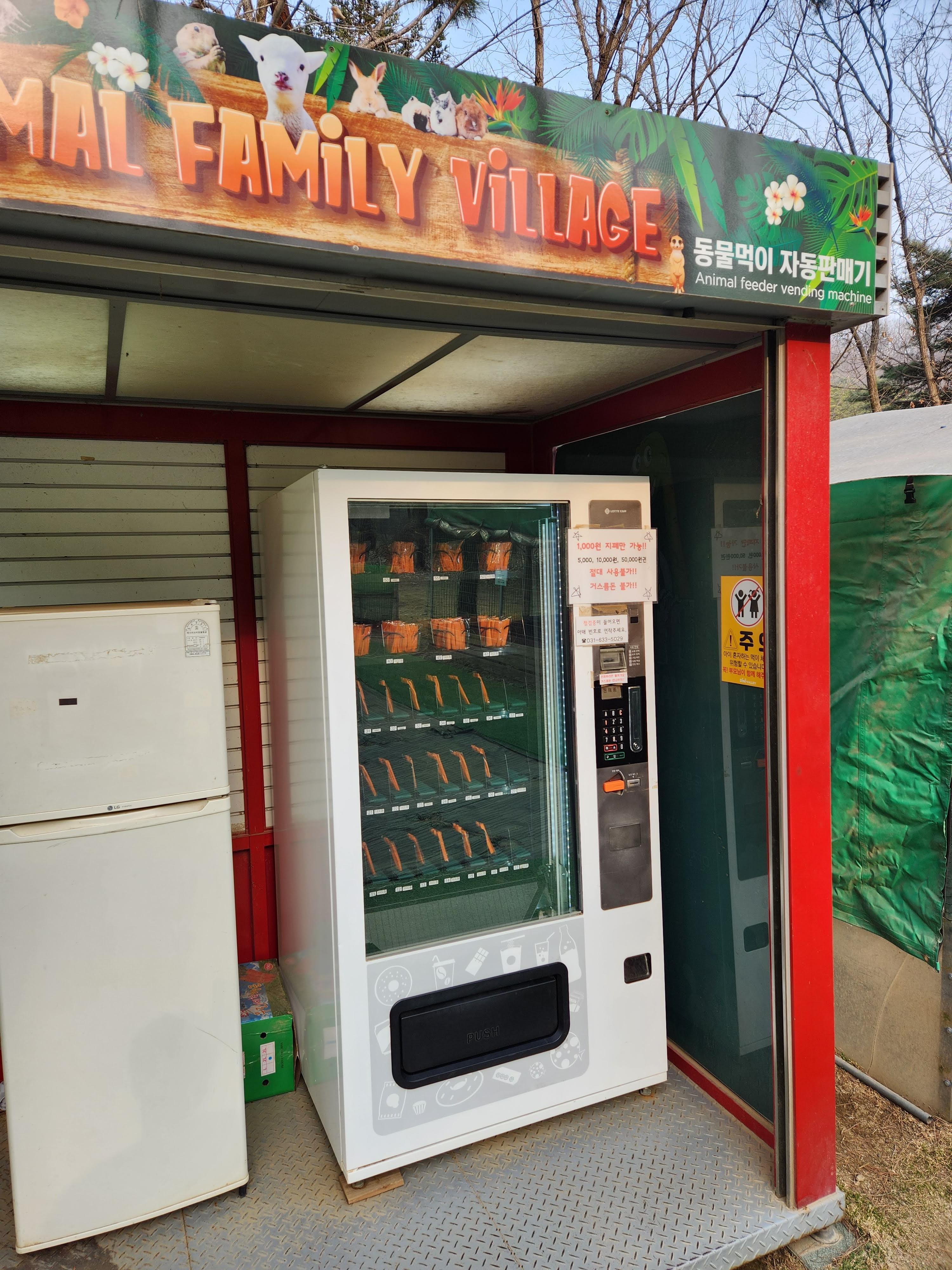 세 번째로 동물 먹이 주기 체험을 할 수 있었습니다. 아래 보시는 것과 같이 동물먹이 자동판매기가 있었고 당근을 천 원에 판매하고 있었습니다. 양, 토끼, 사슴, 오리 등과 같이 생각보다 많은 동물들이 있었고 당근을 사서 아이와 함께 먹이를 주면서 아이가 매우 재미있어했습니다. 가장 만족했던 체험인 것 같습니다. 가시는 분들은 꼭 천 원어치 정도만 사서 먹이 주기 체험을 해보면 좋을 것 같습니다.