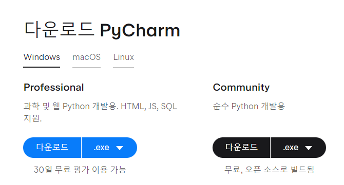 https://www.jetbrains.com/ko-kr/pycharm/download/