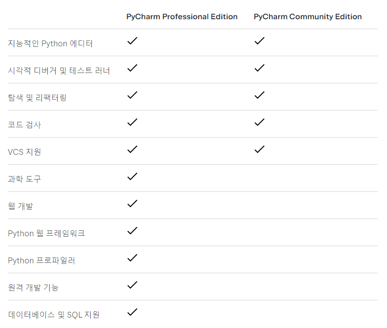 커뮤니티 버전과 프로페셔널 버전이 있으며 특별히 기능이 필요하지 않은 일반 사용자라면 커뮤니티로도 충분할 것 같다.