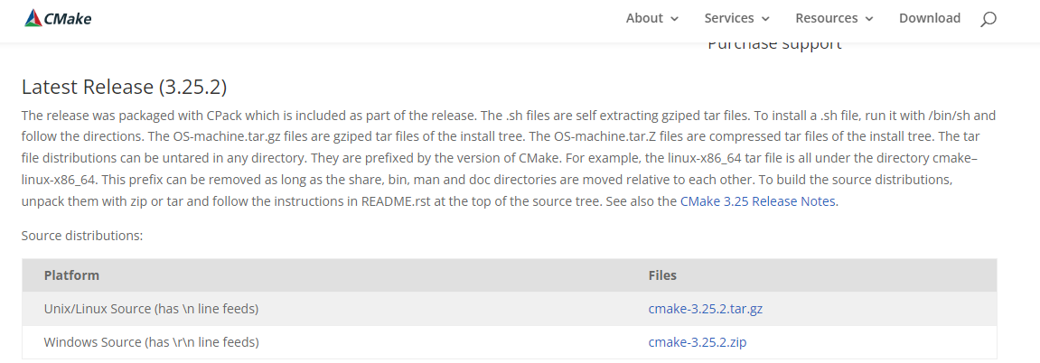 wget https://github.com/Kitware/CMake/releases/download/v3.25.2/cmake-3.25.2.tar.gz