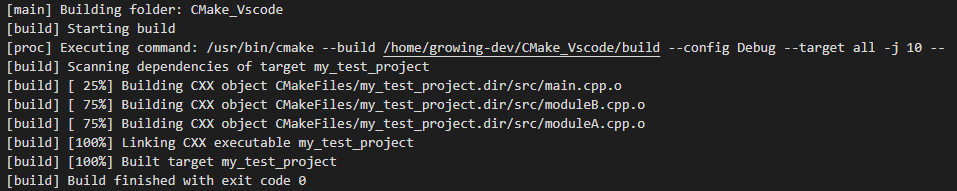 build내에 생성된 my_test_project를 실행하면 functionA called와 functionB called가 순차적으로 호출됨을 확인할 수 있다.