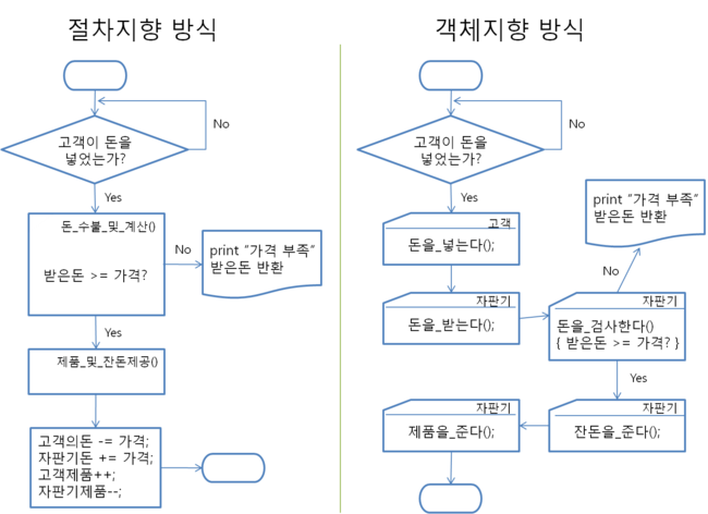 하지만 프로그램 내의 코드/파일이 많아지고 여러 프로그램을 묶은 큰 하나의 프로그램을 만드는 등 크고 복잡해지는 프로그램의 경우에는 객체지향 방식이 훨씬 효율적이고 유지보수에 좋다.