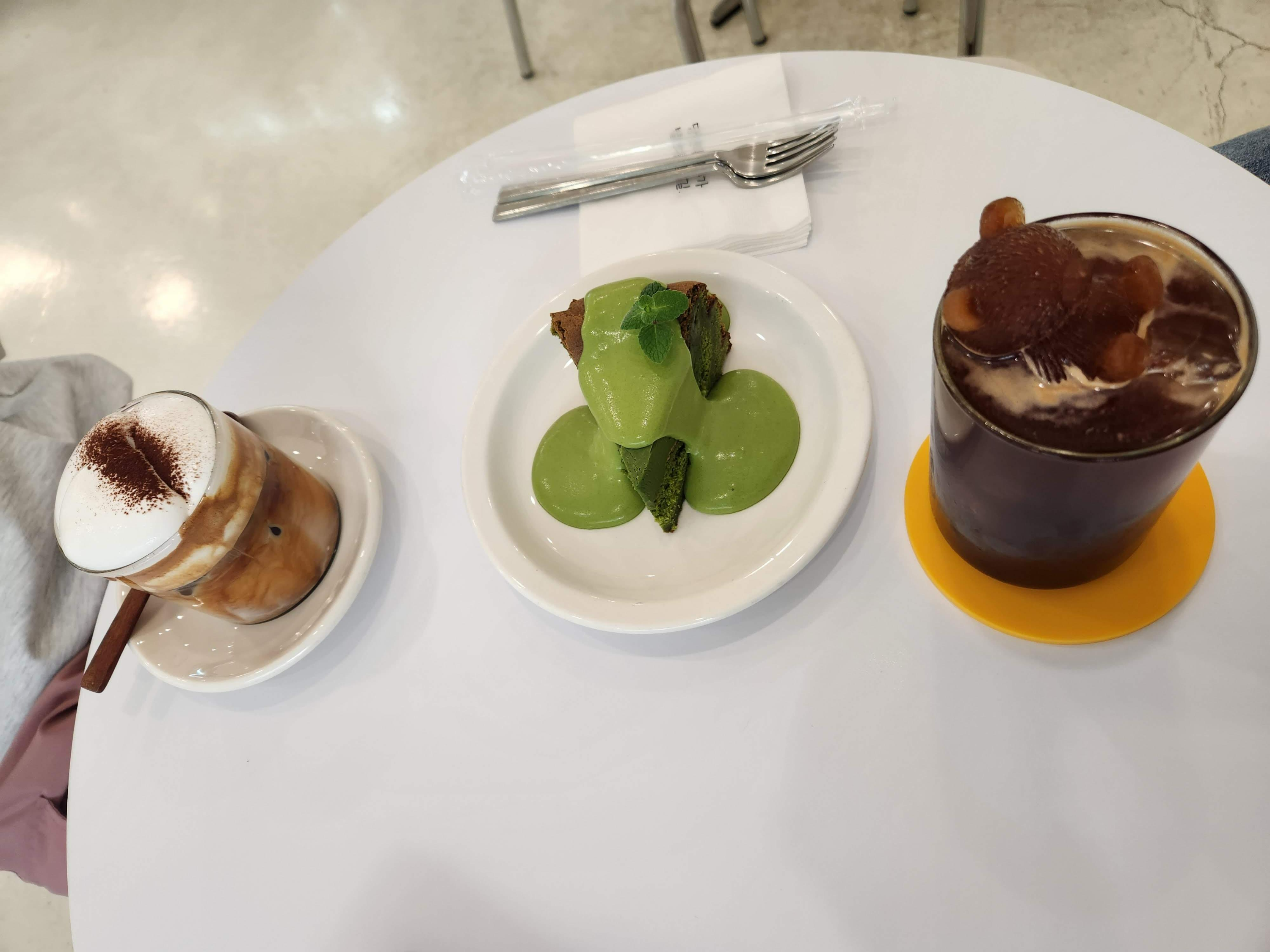 음료는 무난했고 케이크가 매우 맛있었습니다. 진한 말차 초콜릿과 크림이 올라가 있어서 개인적으로 맛있게 먹었습니다.