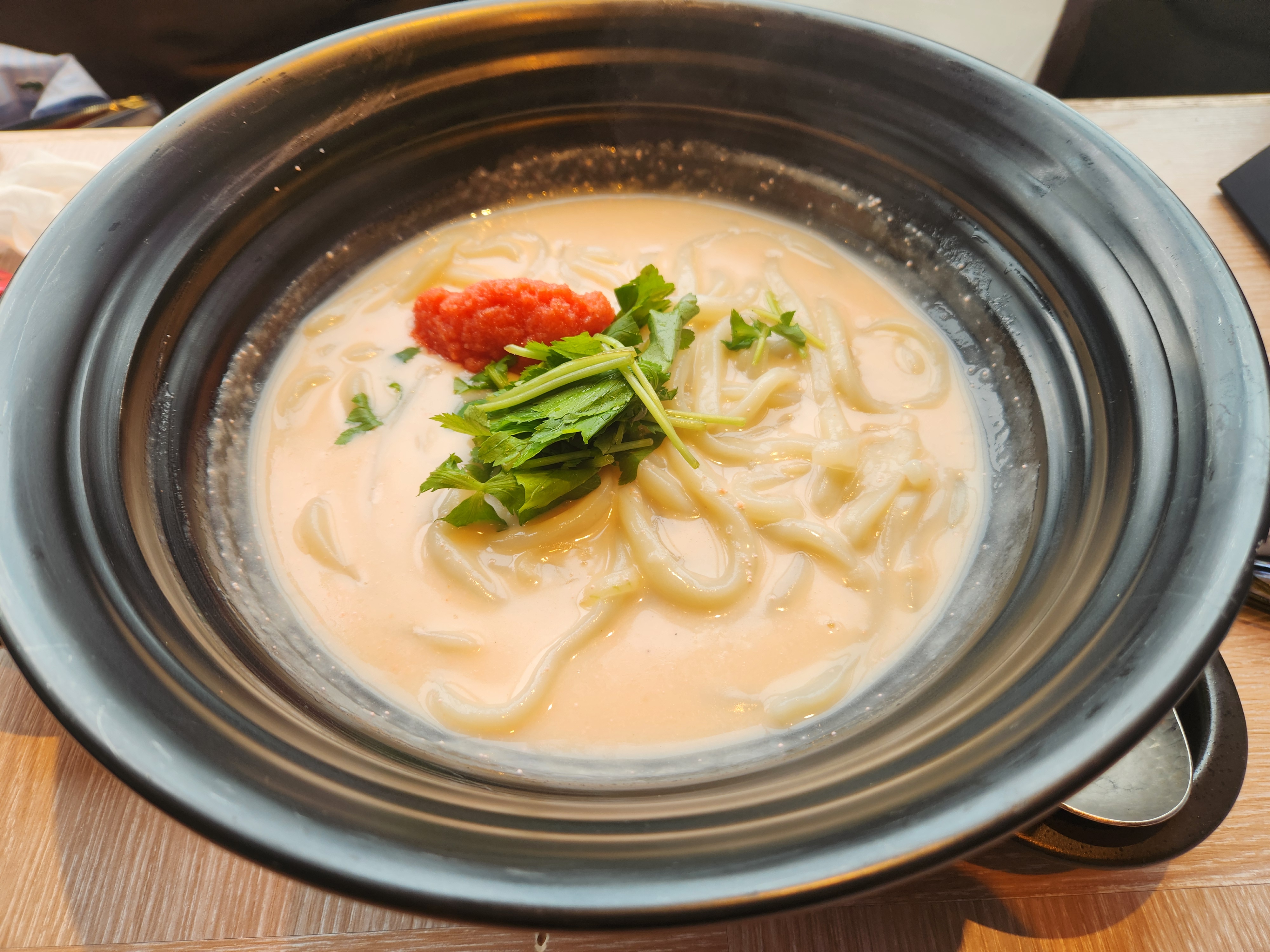 명란 크림 우동: 고소한 크림 국물에 명란이 올라가 있어서 색다른 맛이었어요.