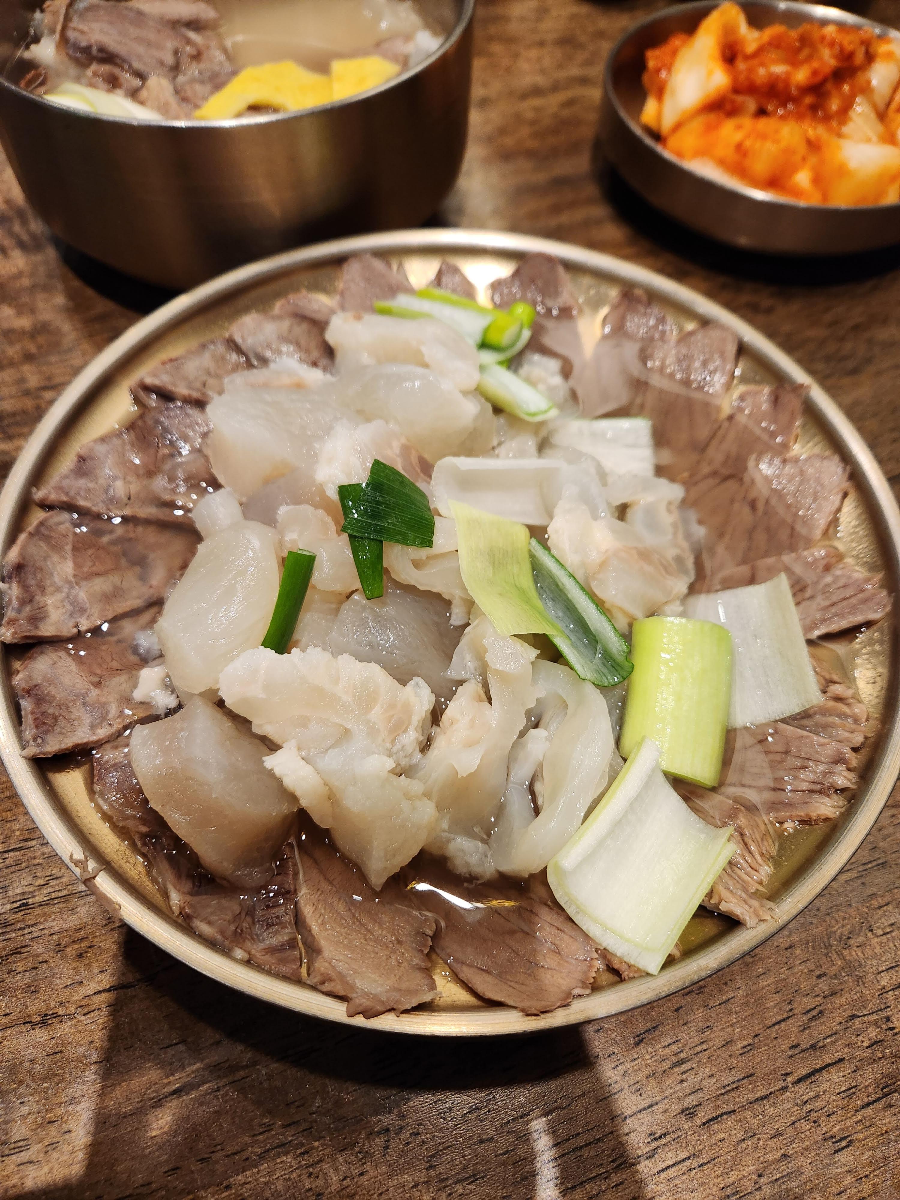 우리는 소고기 수육 대자와 곰탕 1개를 주문했다.