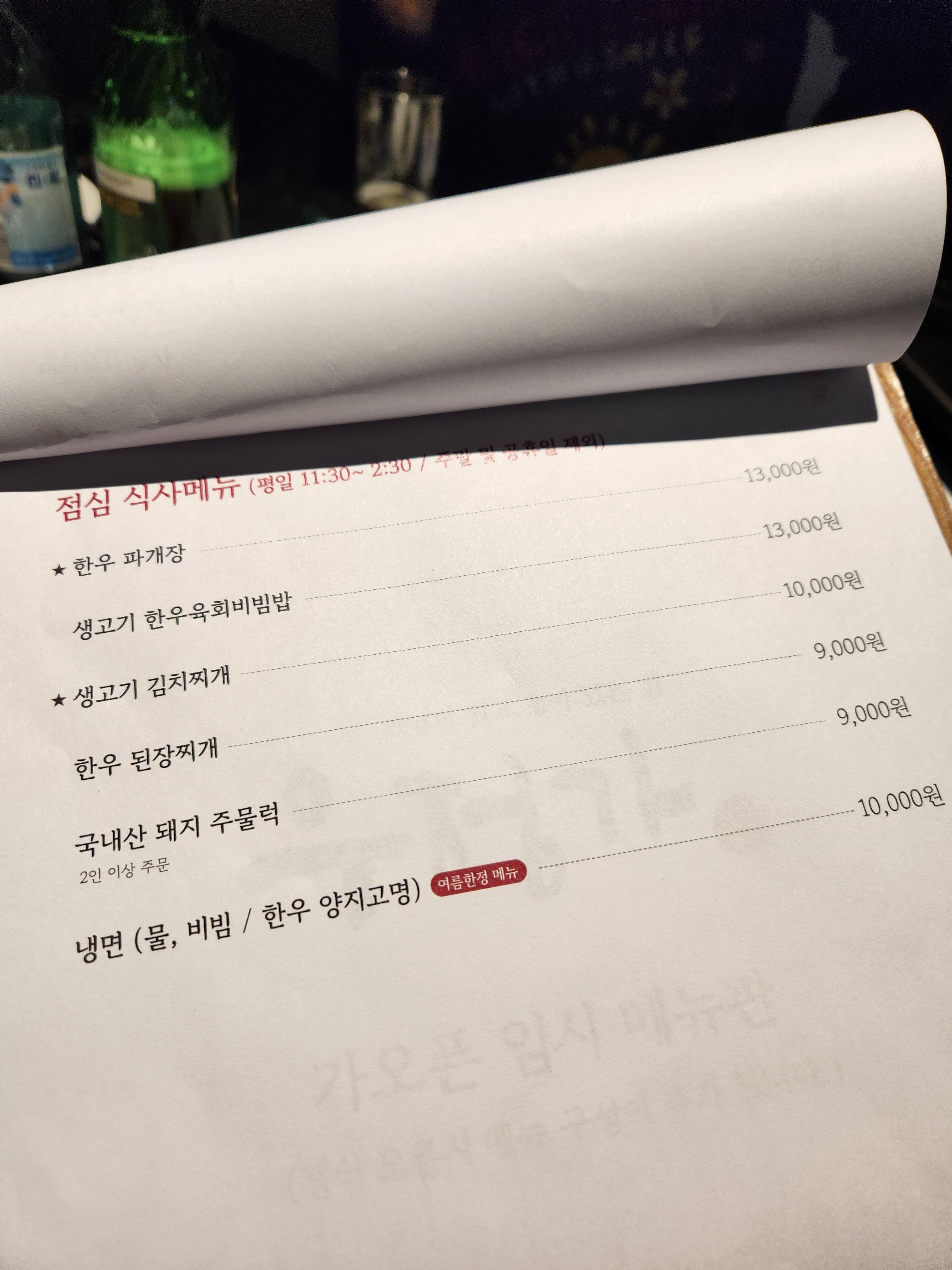 여느 식당과 비슷하게 평일 점심 메뉴가 있었다. 요즘은 점심에도 꽤 괜찮은 메뉴를 먹는다면 만원 이하로 먹기 힘든 것 같다.