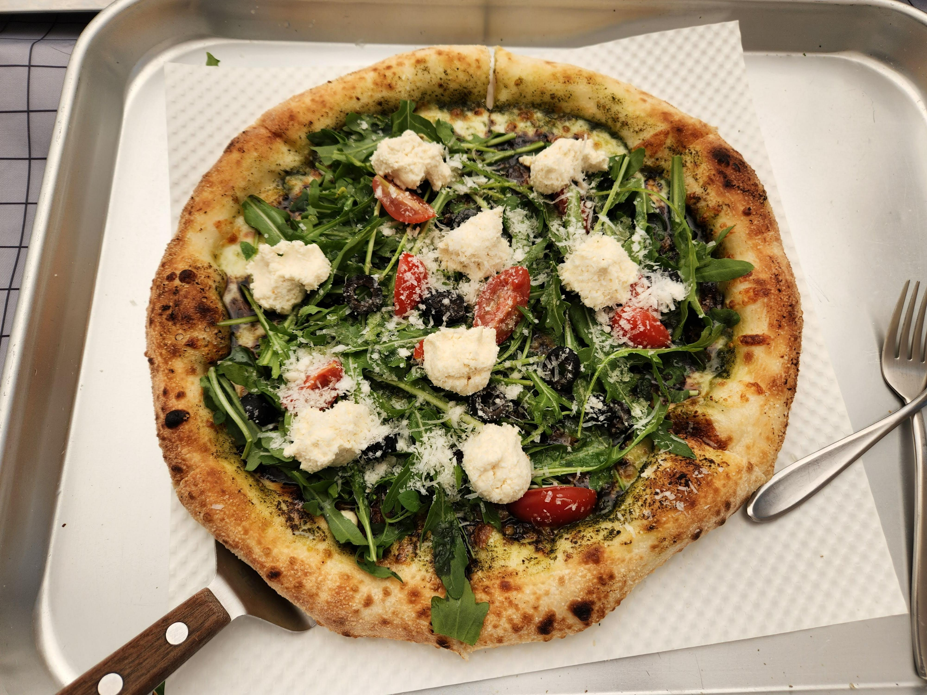 피자가 나왔다. 루꼴라 리코타 피자 (24,9000원)는 루꼴라와 리코타 치즈가 들어가 있고 바질 베이스의 전형적인 맛이었다. 도우도 적당히 쫄깃하고 고소하게 맛있었다. 야외에서 먹는 느낌이 들어서 더욱 맛있었던 것 같다. 아이도 피자를 잘 먹었다.