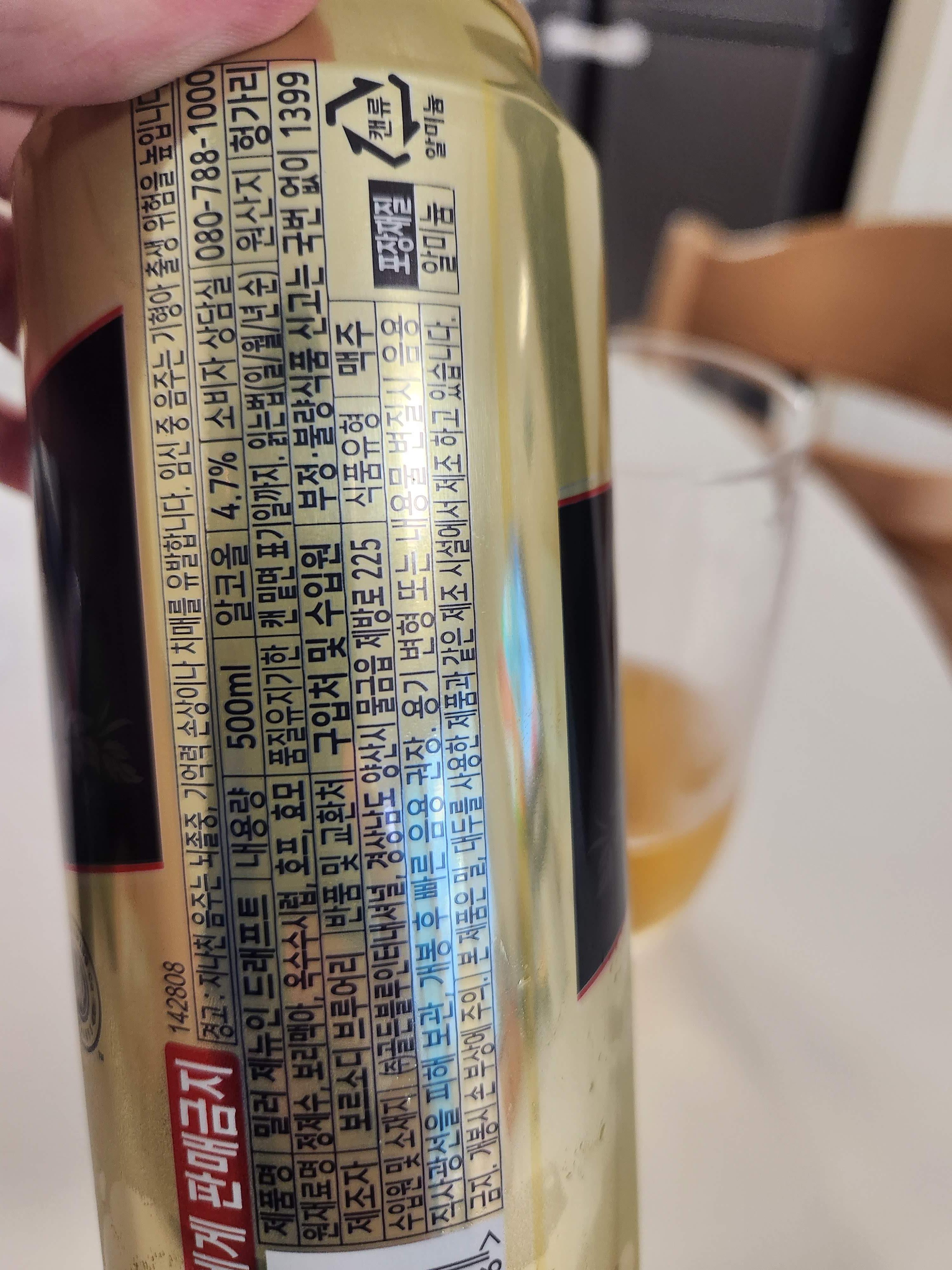 원재료명 : 정제수, 보리맥아, 옥수수시럽, 호프, 효모