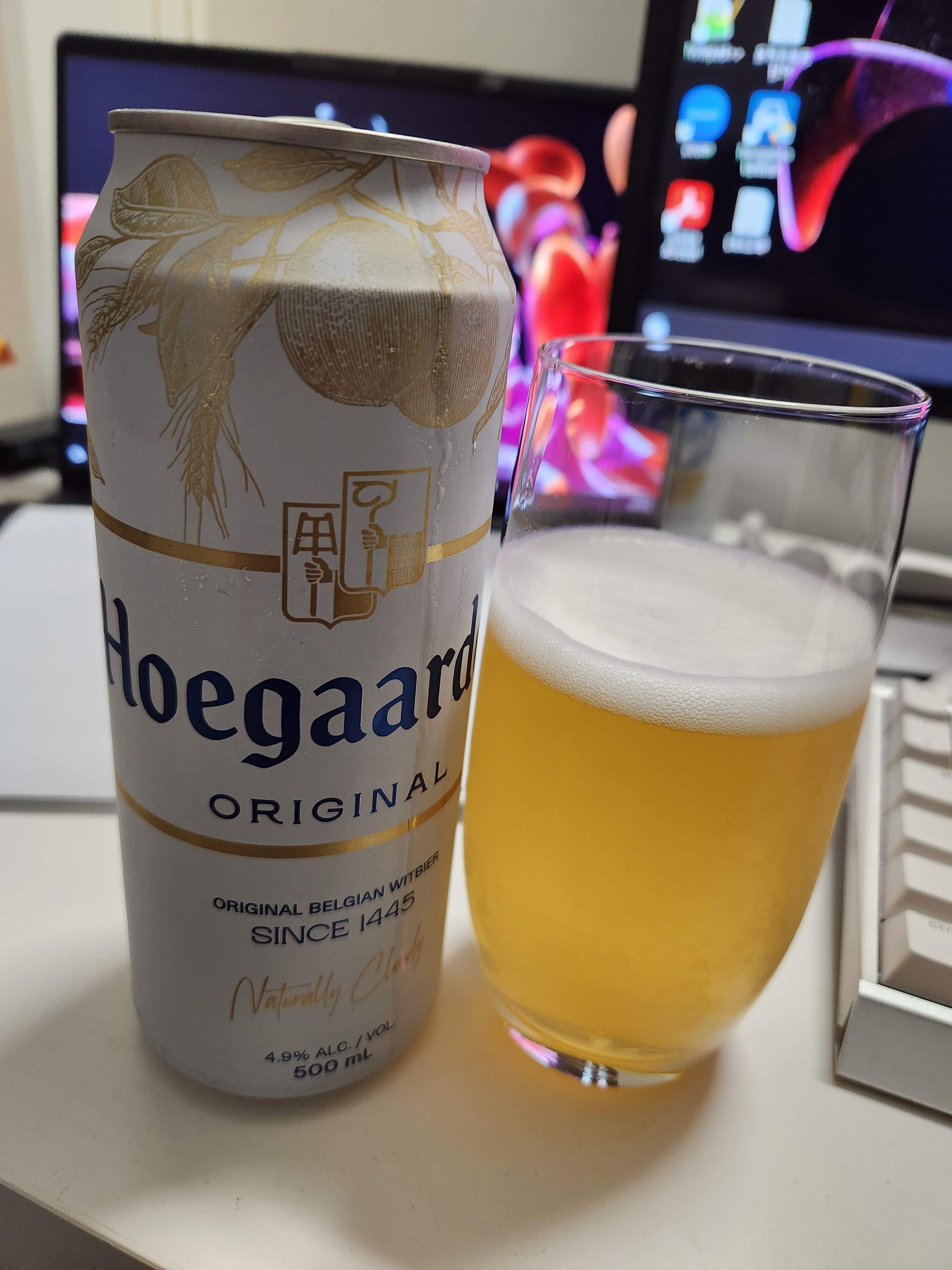 가장 유명하고 무난한 밀맥주 중에 하나입니다. 특유의 시트러스한 향으로 인해 많은 사람들이 가볍게 마시기 좋은 맥주인 것 같습니다. 정확하진 않지만 예전에 맥주집에서 호가든을 생맥주로 마신적이 있는데 알코올이 8도 정도였나 그래서 2차로 가볍고 상쾌하게 호가든 생맥을 마시자 해서 갔다가 기억을 잃은 적이 있습니다.. 탄산감이 나쁘지 않고 시원하게 잘 넘어갑니다. 특히 설명에도 나와 있듯이 밀맥주의 특성상 침전물이 조금 생길 수 있어서 회전시켜 잘 섞어 마시면 더 맛있게 마실 수 있는 것 같습니다.