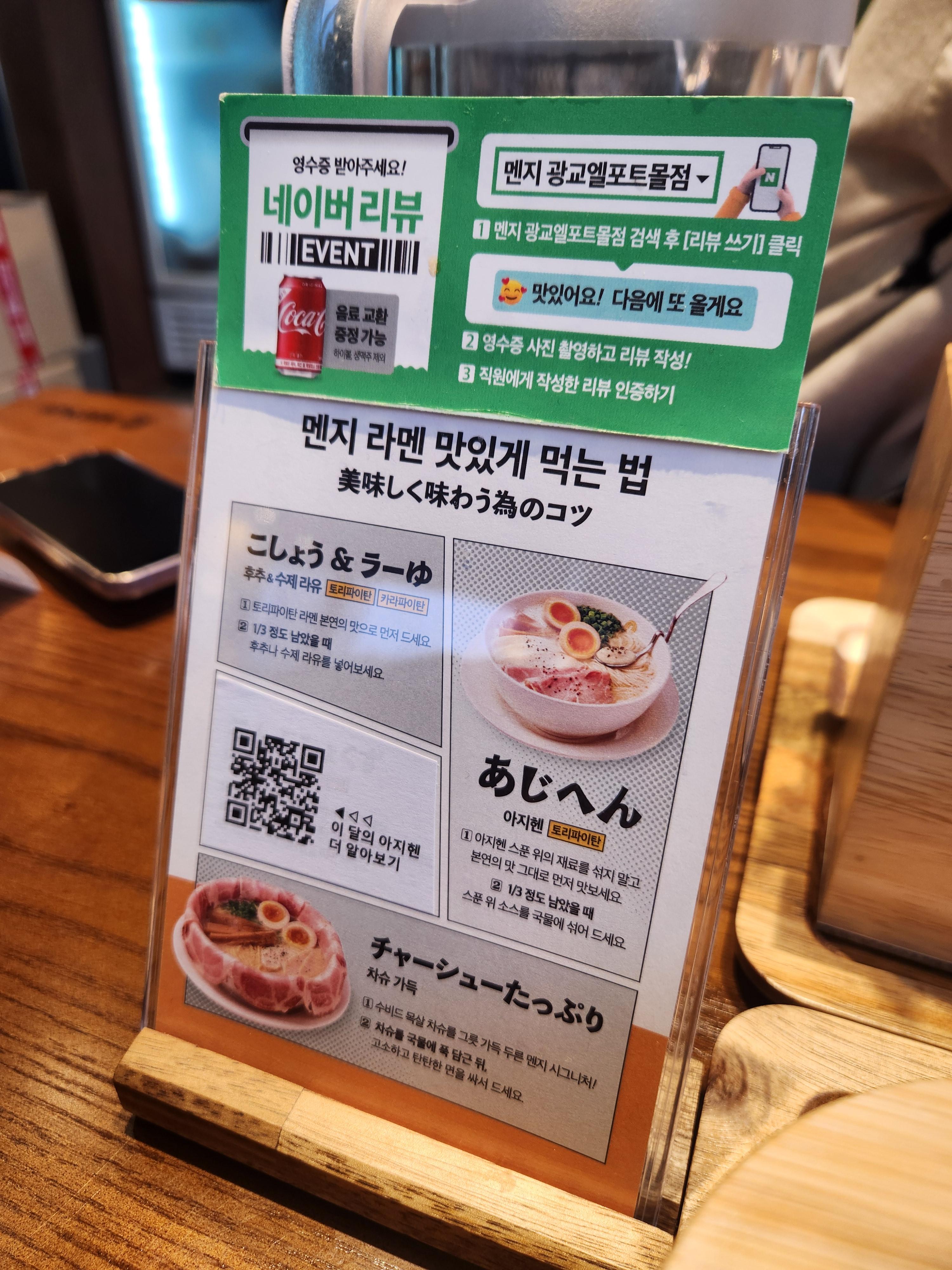 오늘은 라멘 맛집인 멘지 광교엘포트몰점을 방문한 후기를 남겨보도록 하겠습니다.