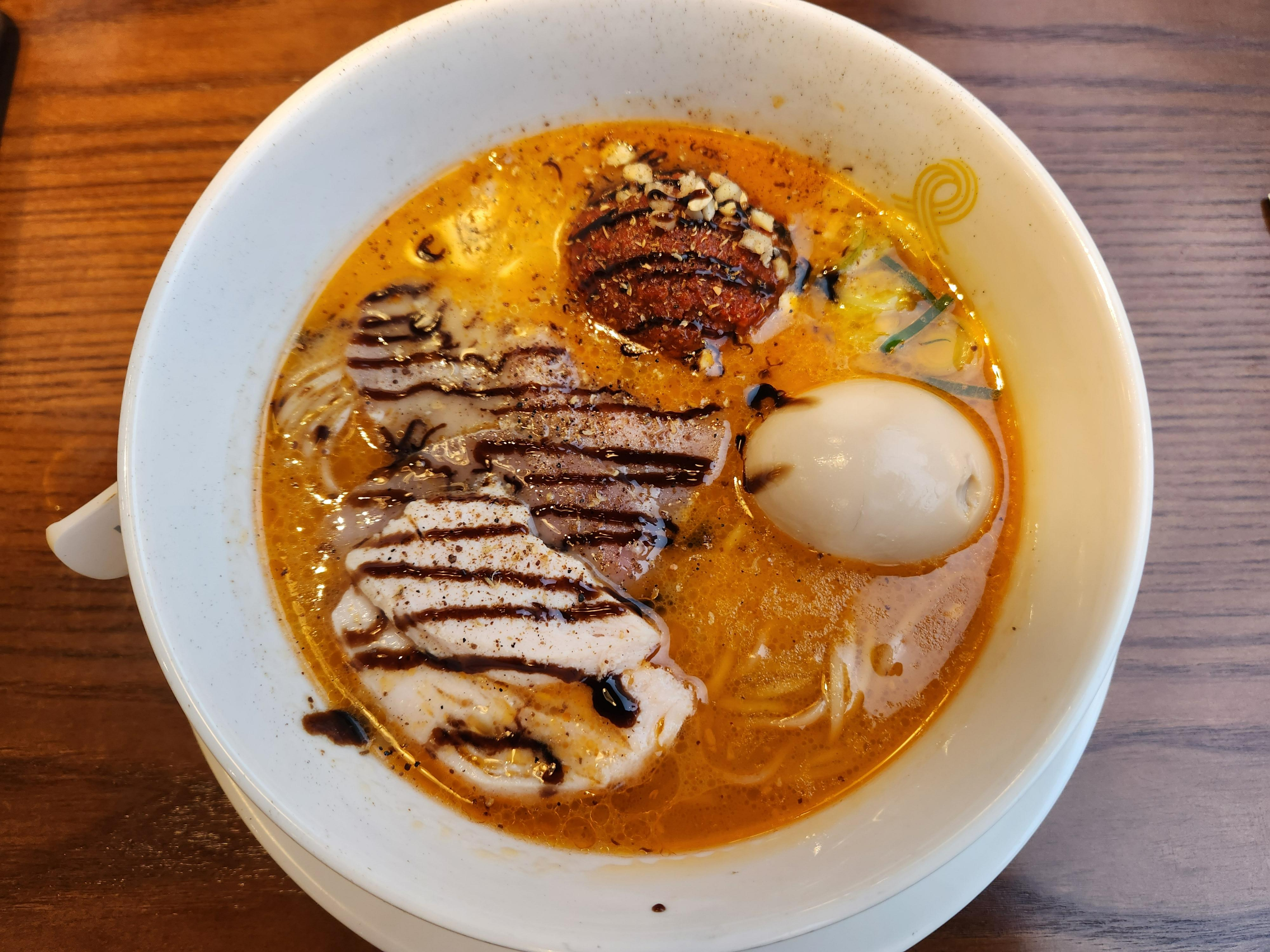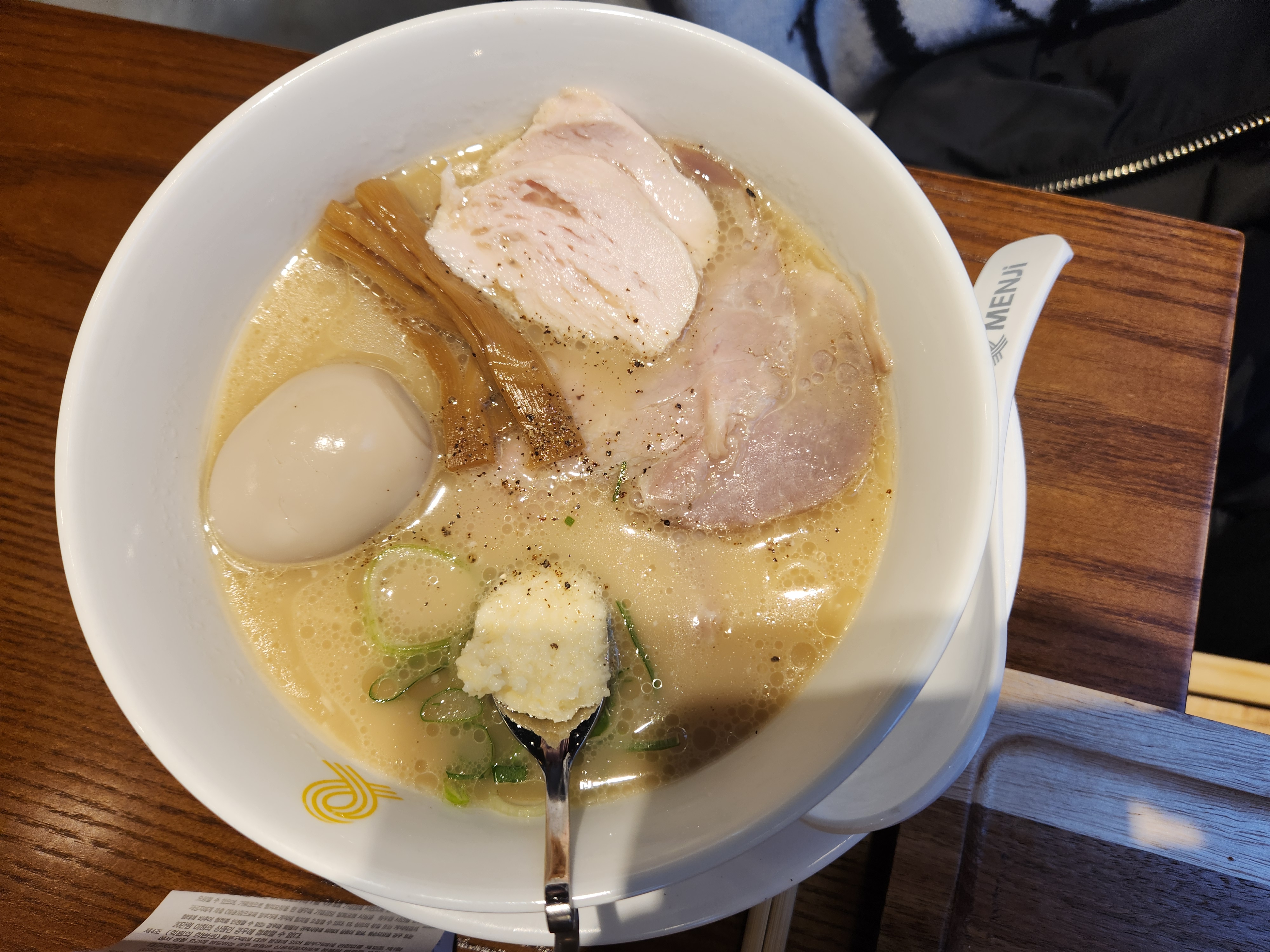 토리파이탄은 기본 닭육수에 다진 마늘을 넣은 라멘이었습니다. 개인적으로 좋아하는 맛이었습니다. 진하면서 크게 느끼하지 않고 깔끔한 맛이었고 특히 면도 제가 좋아하는 스타일이라 마음에 들었습니다.