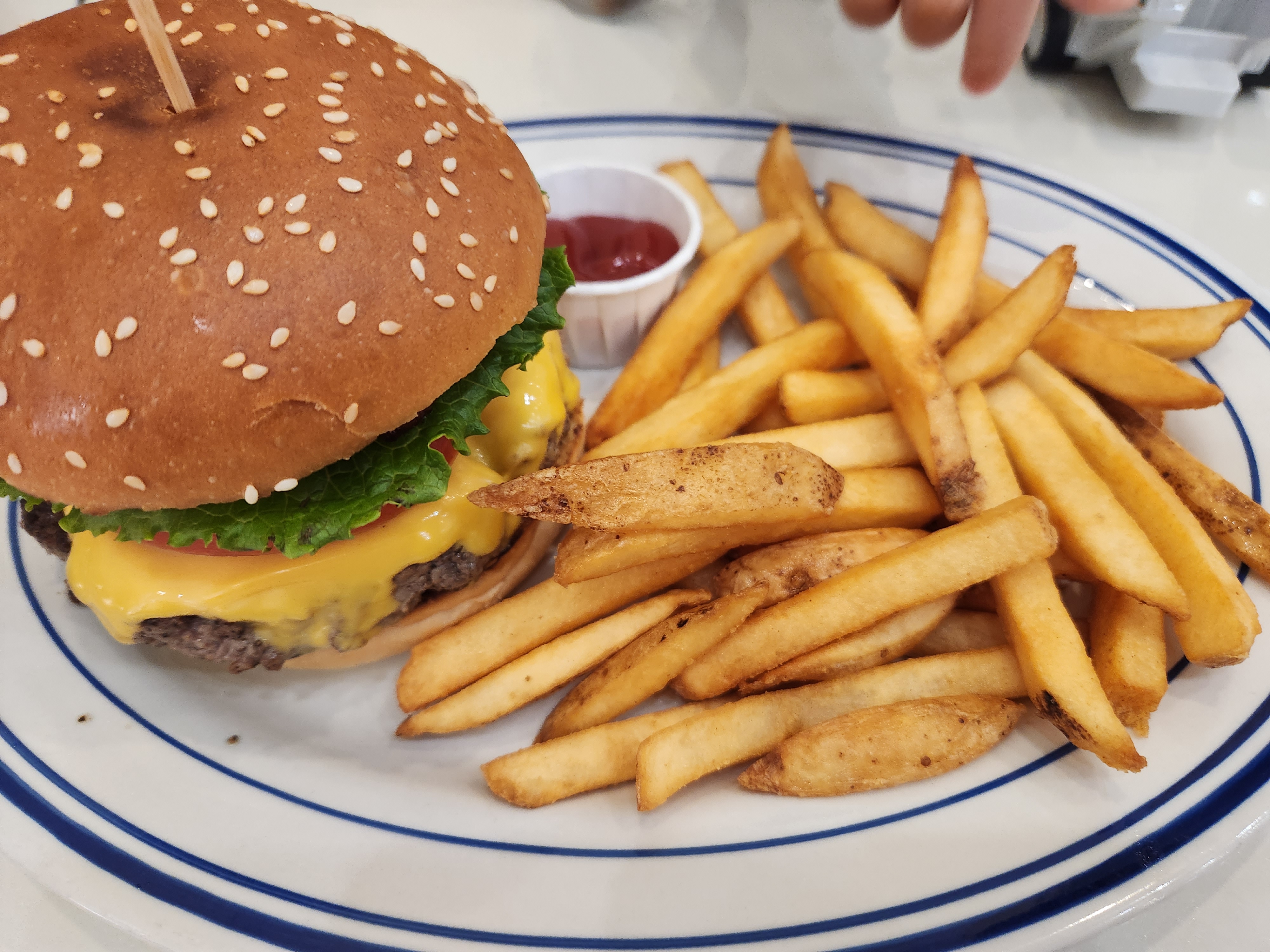 아래는 기본 치즈버거입니다. 매우 단순하게 구운양파, 치즈, 패티 수준이었습니다.