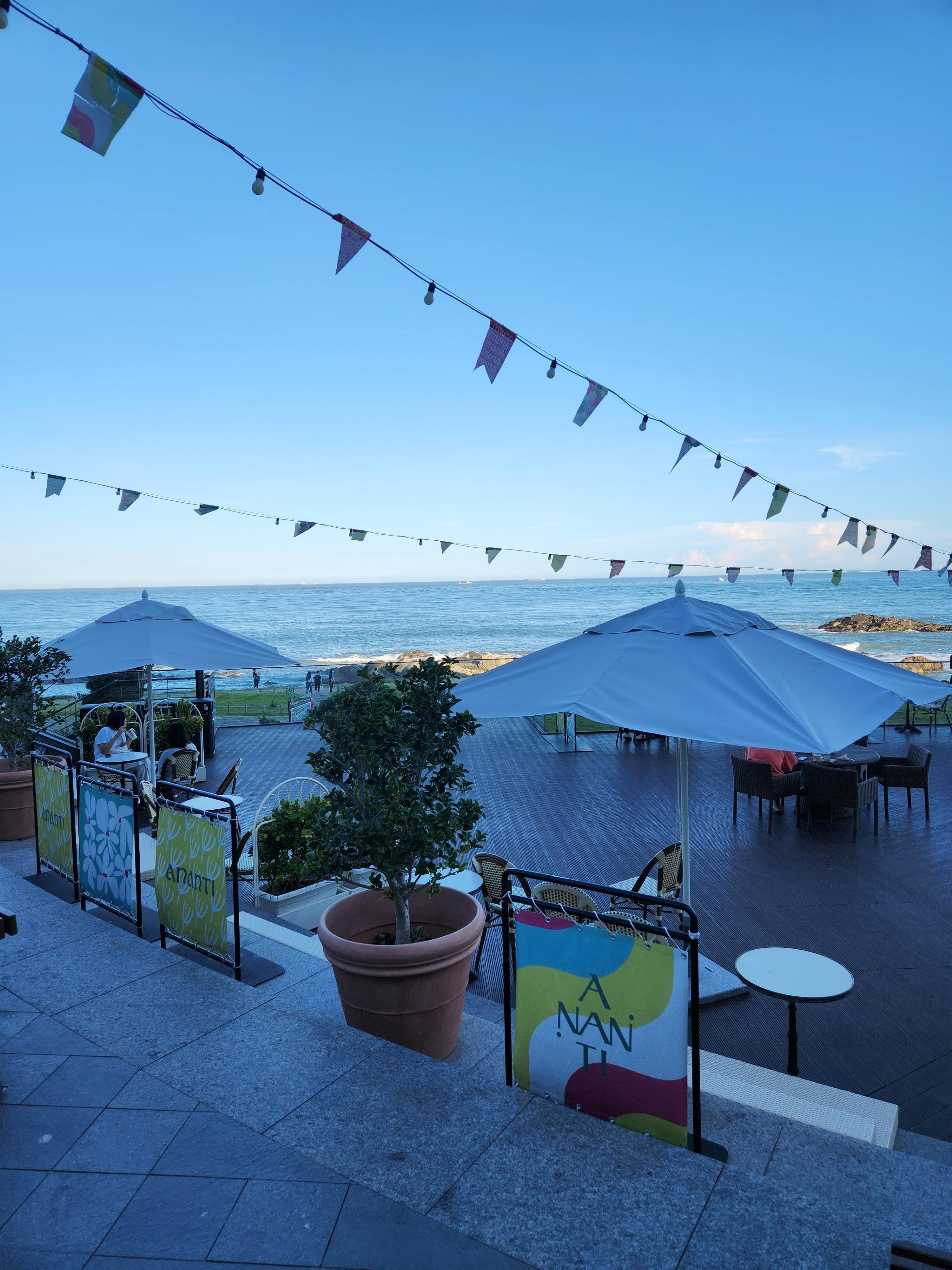 북카페를 나오면 여러 음식점들과 바다 산책로가 연결되어 있습니다. 산책하기 매우 좋았지만 너무 더워서 많이 하진 못했습니다. 음식점이 많진 않고 2~3개 정도 있었는데 저희는 간단하게 치맥을 할 수 있는 곳을 방문했었습니다.