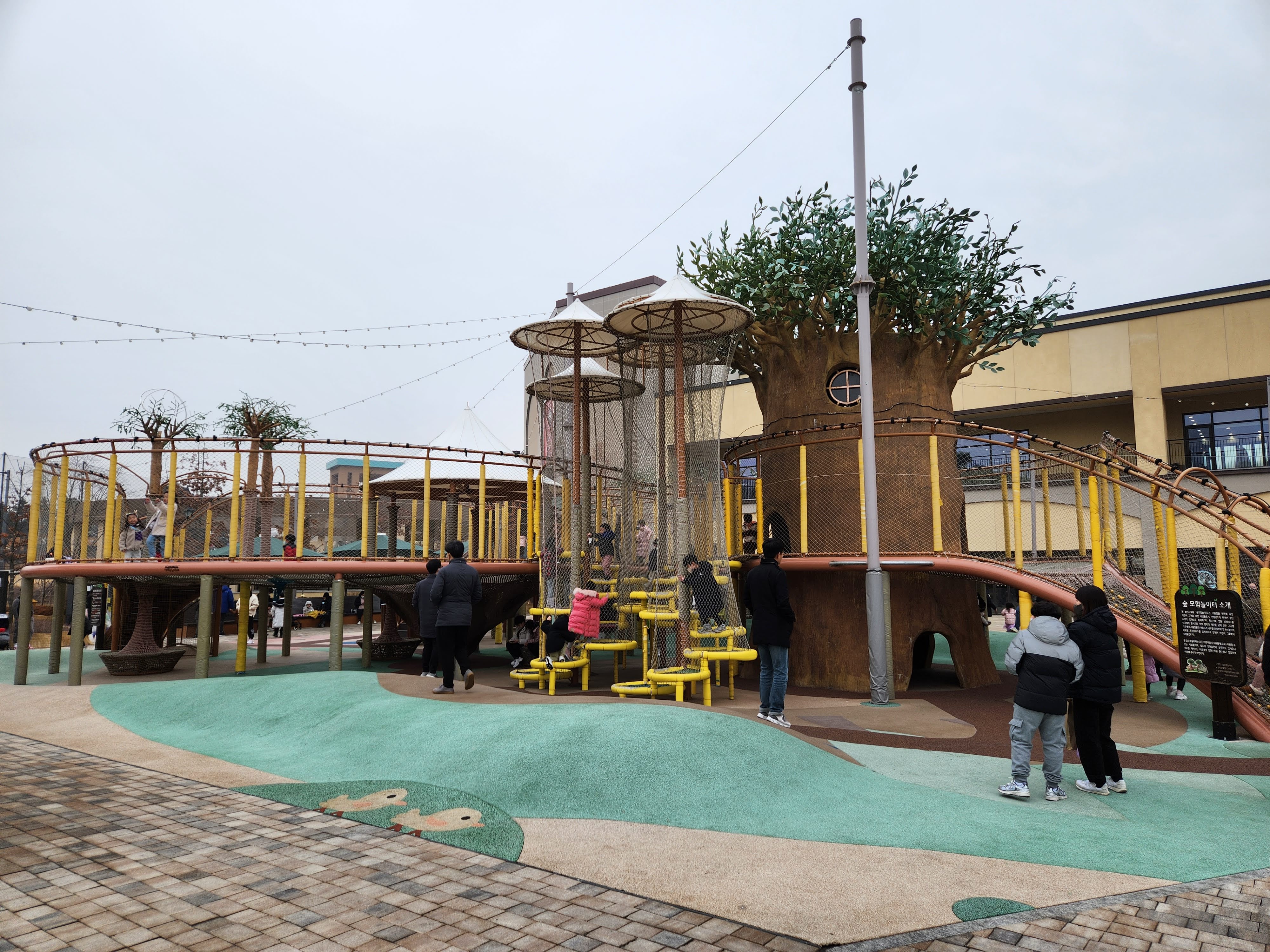 여기가 내가 가장 애정하는 놀이터이다. 내가 가본 곳 중에는 단일 놀이시설로 가장 큰 것 같다. 각종 구조물들이 끈으로 연결되어 있어서 아이가 엄청 좋아한다. 덩달아 나도 편하고 좋다.