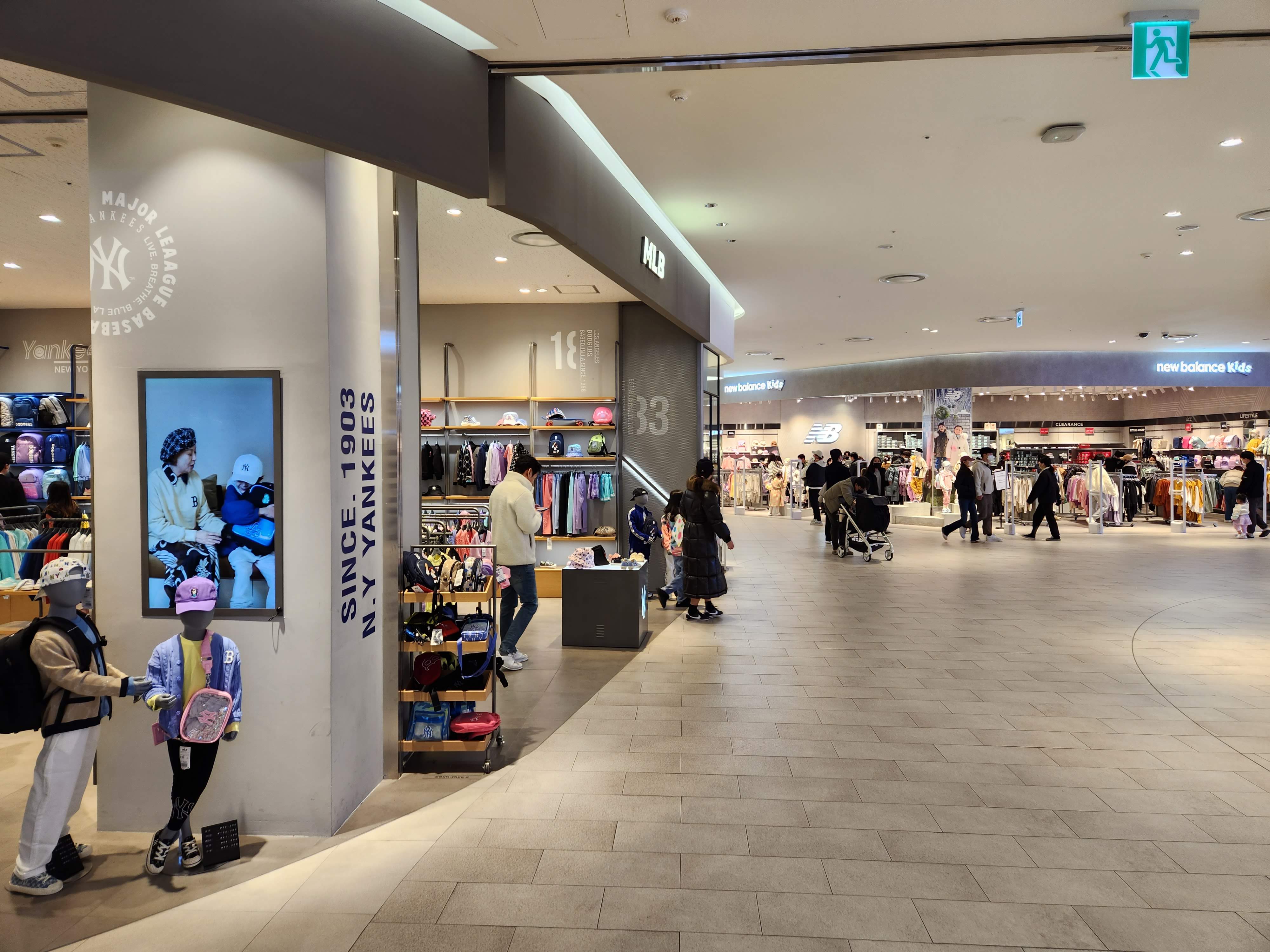 안으로 들어오면 MLB와 new balance kids가 보인다.