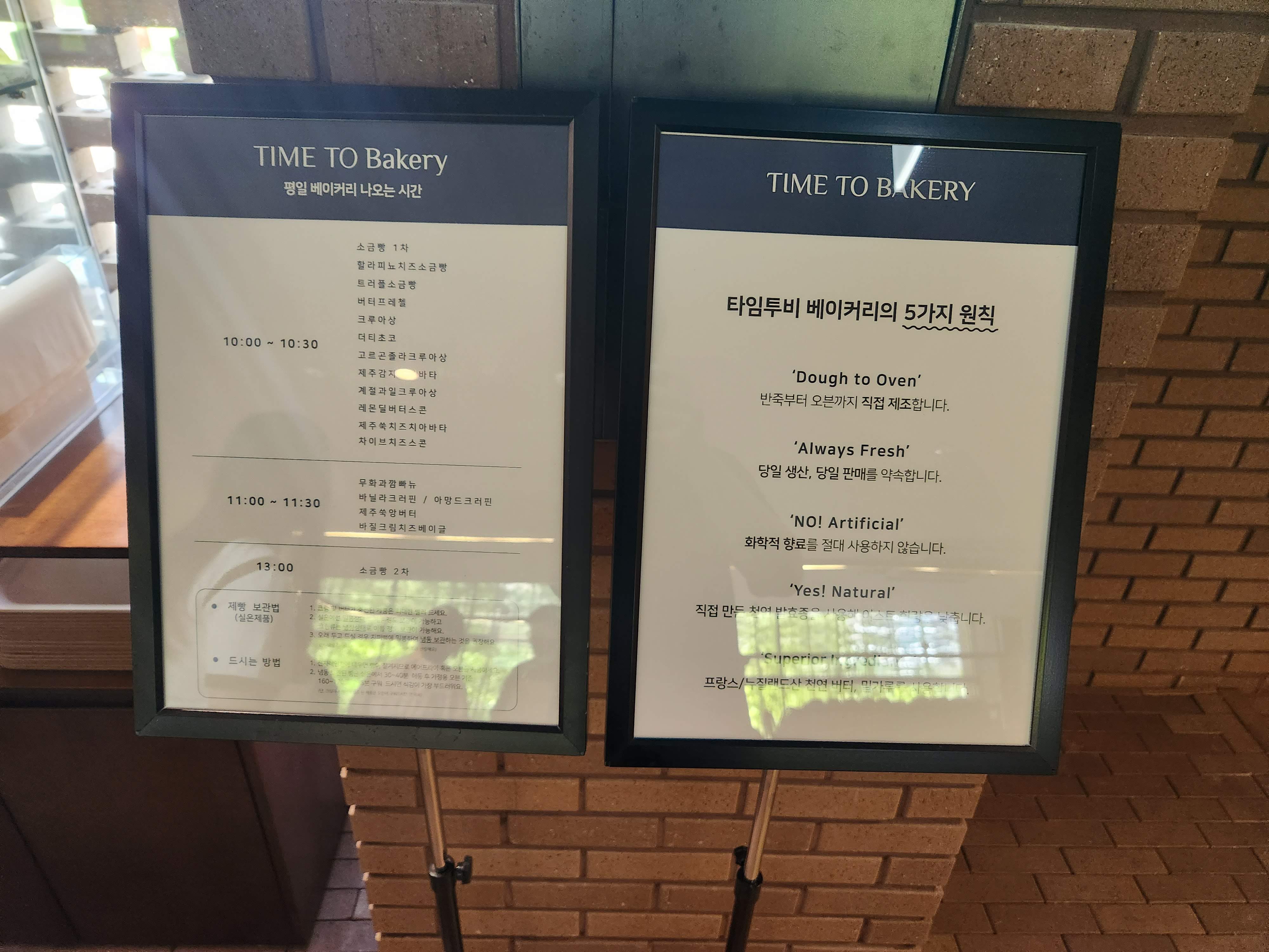 베이커리가 나오는 시간이 아래와 같이 공지가 되어 있습니다. 보통 시간까지 나와 있는 경우는 잘 없는데 베이커리에 많이 신경 쓰고 있는 것처럼 느껴졌습니다.