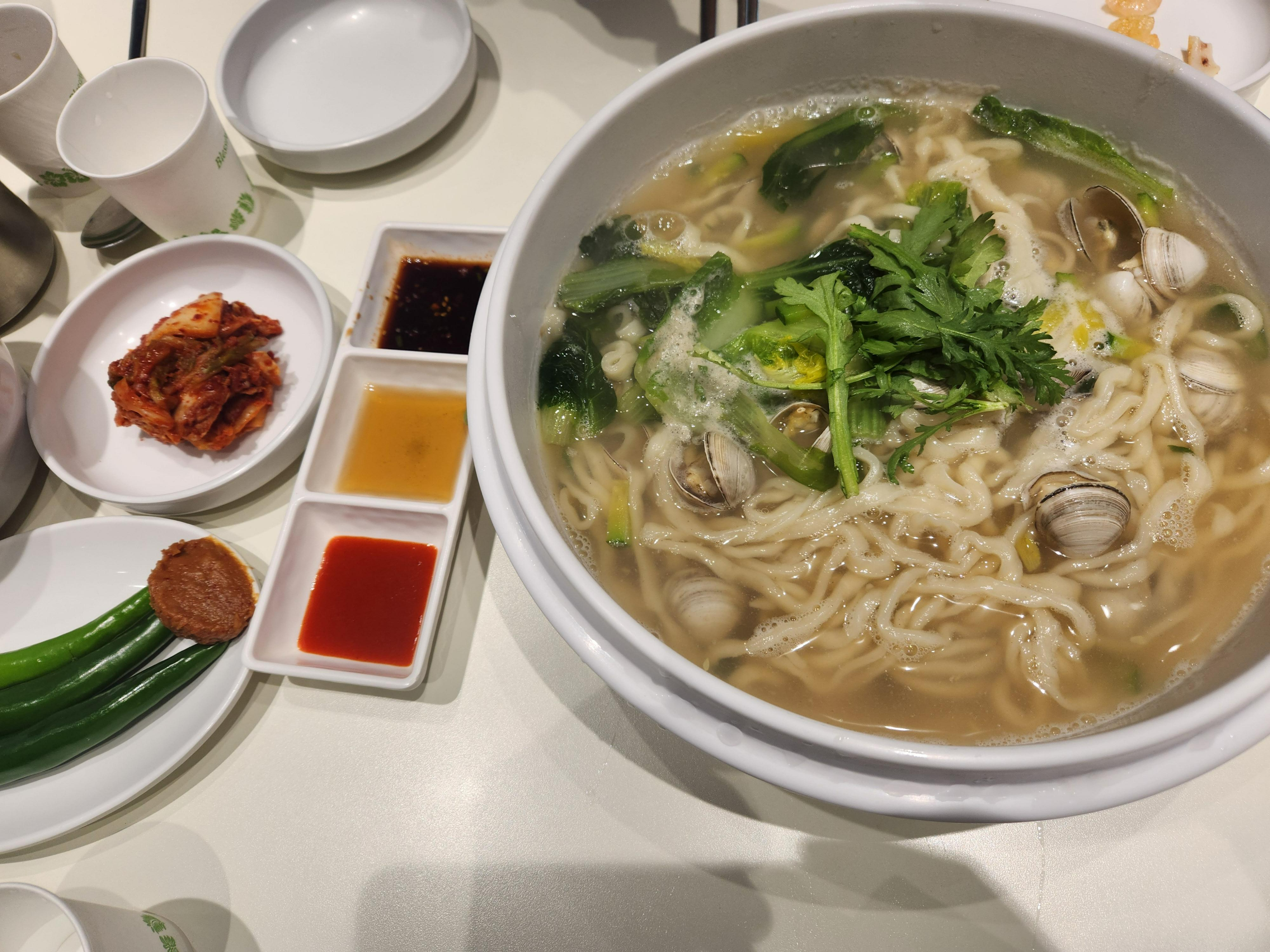 맛은 사실 특별하다기 보다는 평범하면서도 까기 어려운 시원한 해물칼국수 맛이었습니다. 조개와 야채가 잘 어우러져서 싫어할 수 없는 맛이고 면발도 쫄깃하면서도 부드러워서 괜찮았습니다.
