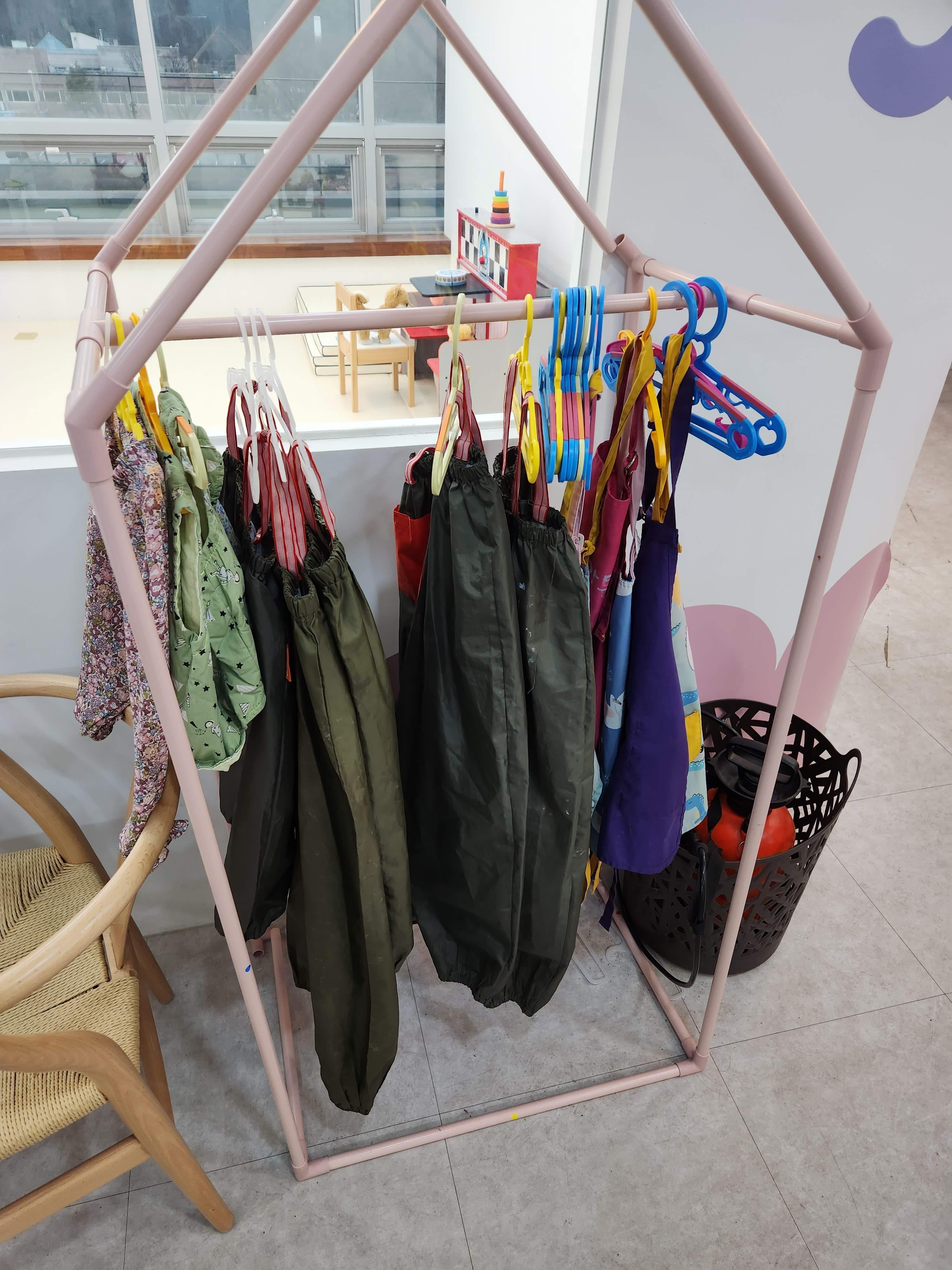 우리는 흙놀이 체험이라서 멜빵처럼 생긴 옷을 입고 장화까지 신었다. 미리 여벌 옷을 준비해 가면 좋긴 해서 미술놀이 때 하던 옷과 물티슈를 준비해 가긴 했다. 하지만 물티슈와 예비 마스크 등 세심하게 준비되어 있어서 사용하지 않았다.