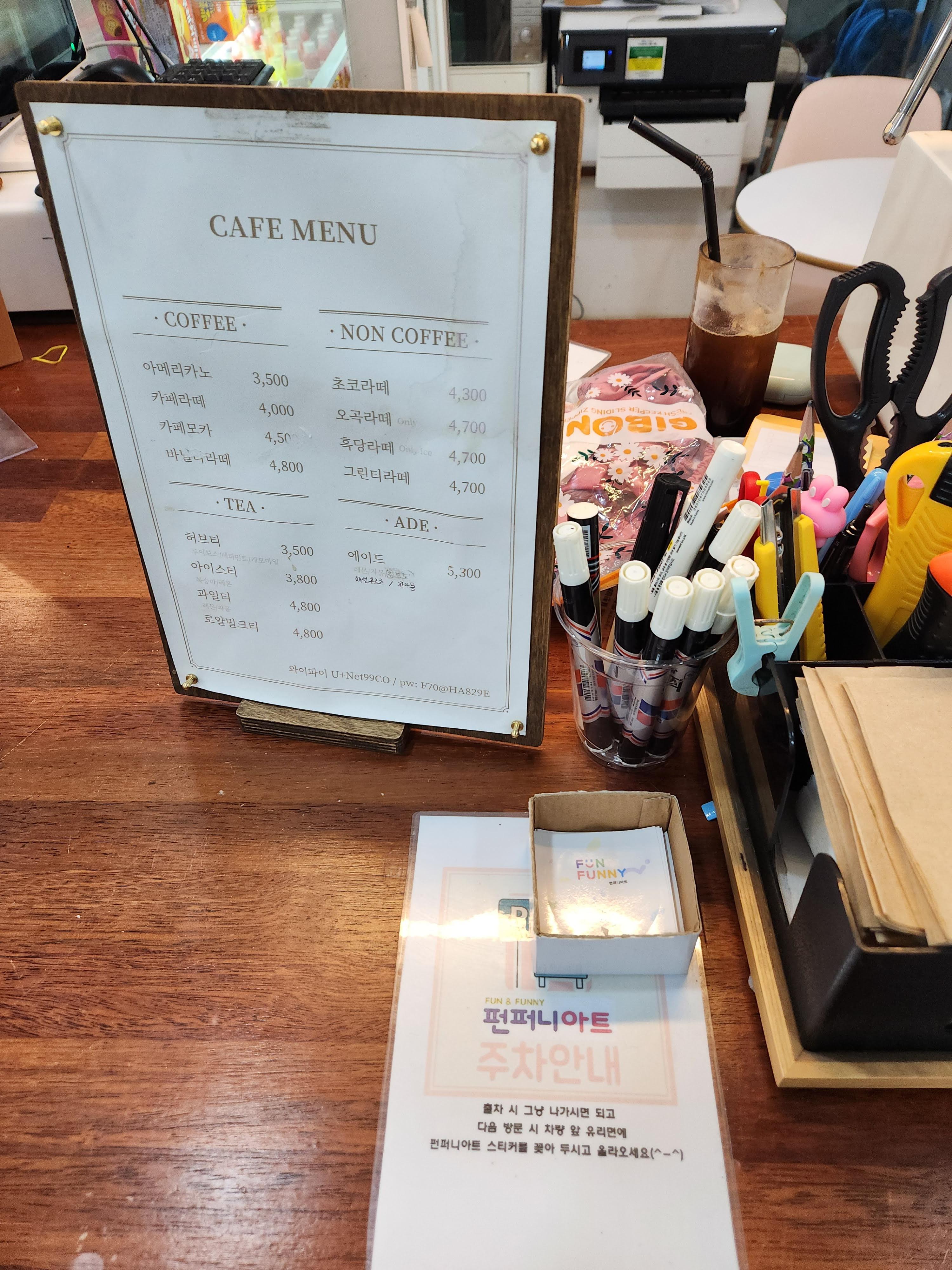 크게 비싸지 않은 가격에 아메리카노 한잔 할 수 있다. 우리는 생각보다 1시간이 짧아서 음료를 사먹진 않았다.