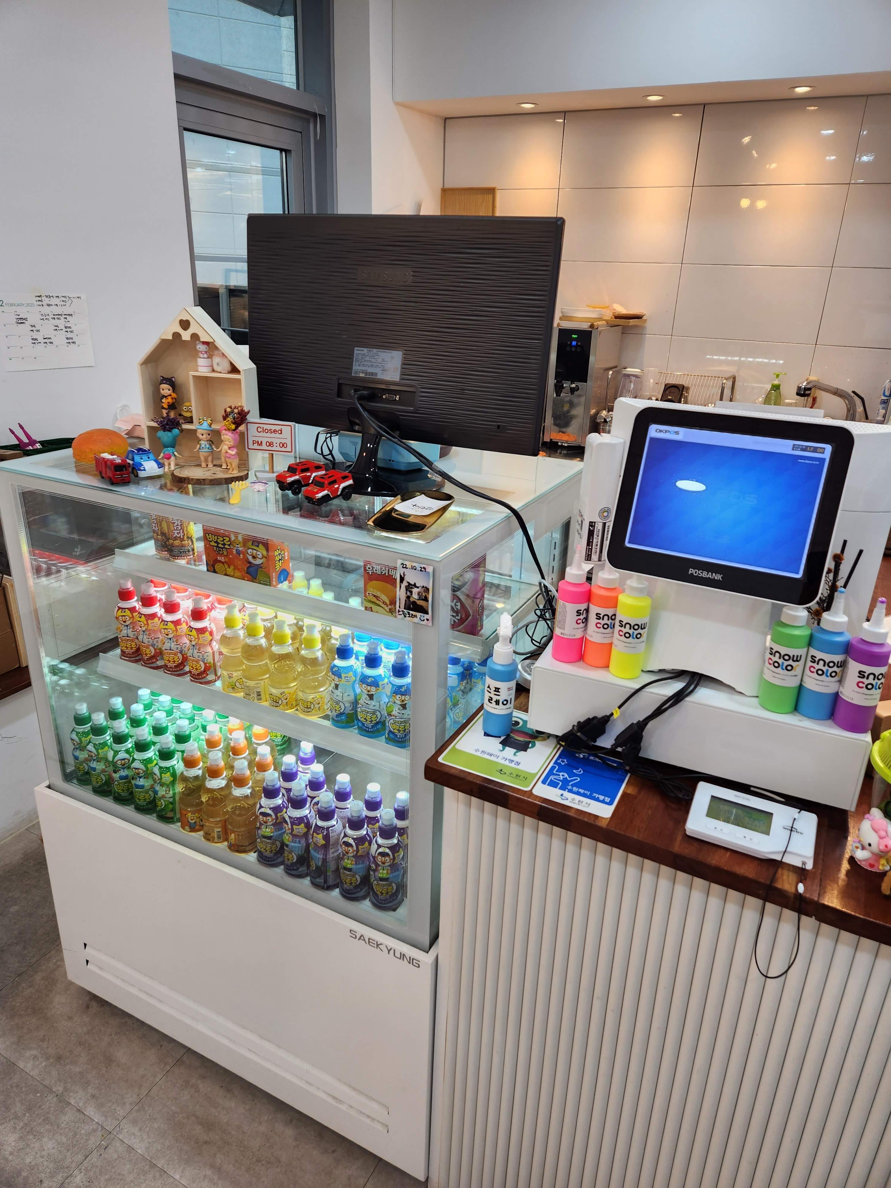 아이들이 좋아하는 뽀로로 주스가 색깔별로 있었고 간단한 과자도 있었다. 가격은 모르겠지만 수원페이가 되는 점이 괜찮았다.