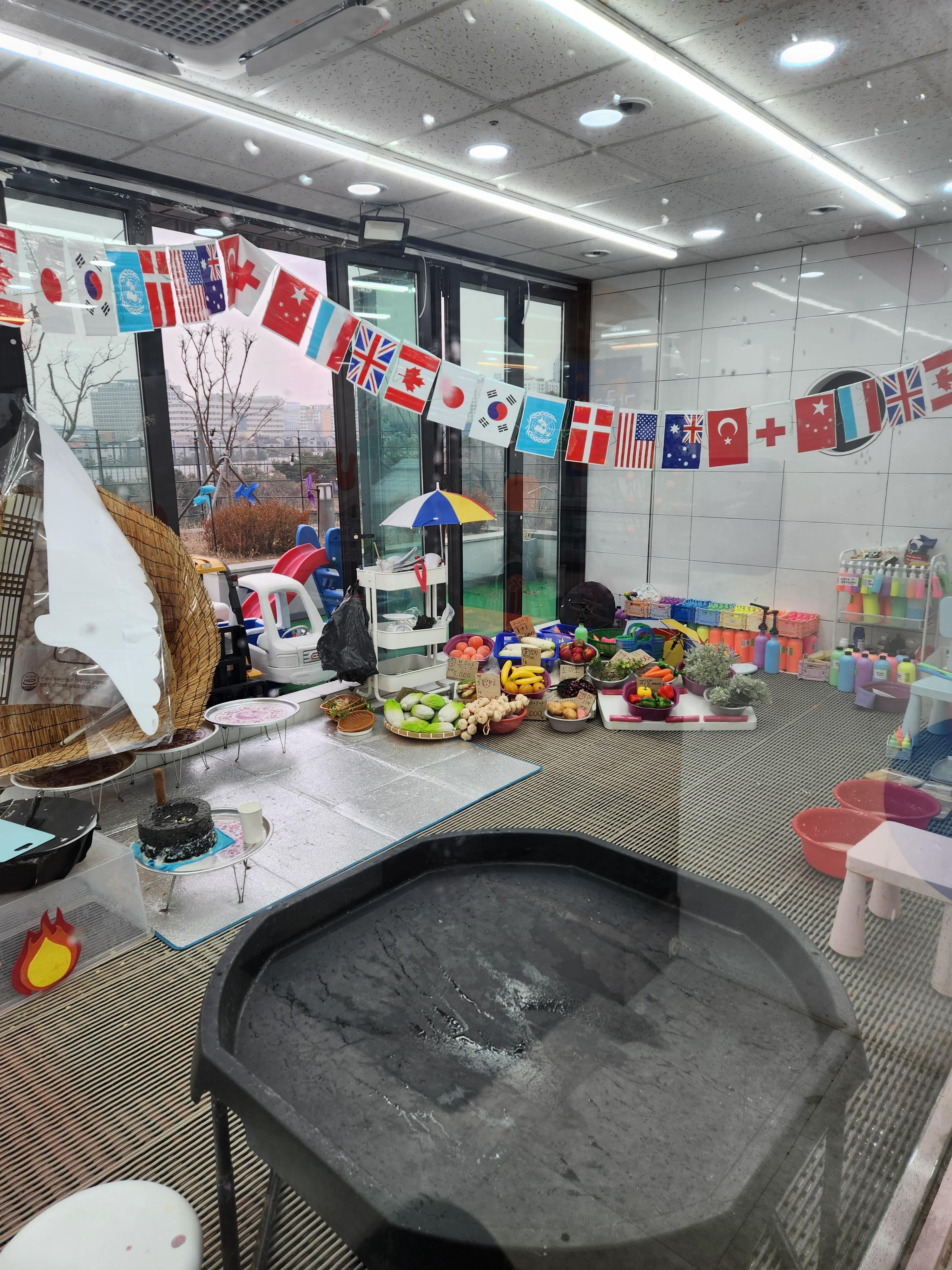 밖에는 장난감 놀이시설이 조금 갖춰져 있다. 날씨가 좋을 때는 시작 전이나 끝난 후에 잠깐씩 놀 수 있을 것 같다. 아이가 좋아하는 자동차 위주로 있어서 굉장히 좋아할 것 같다.