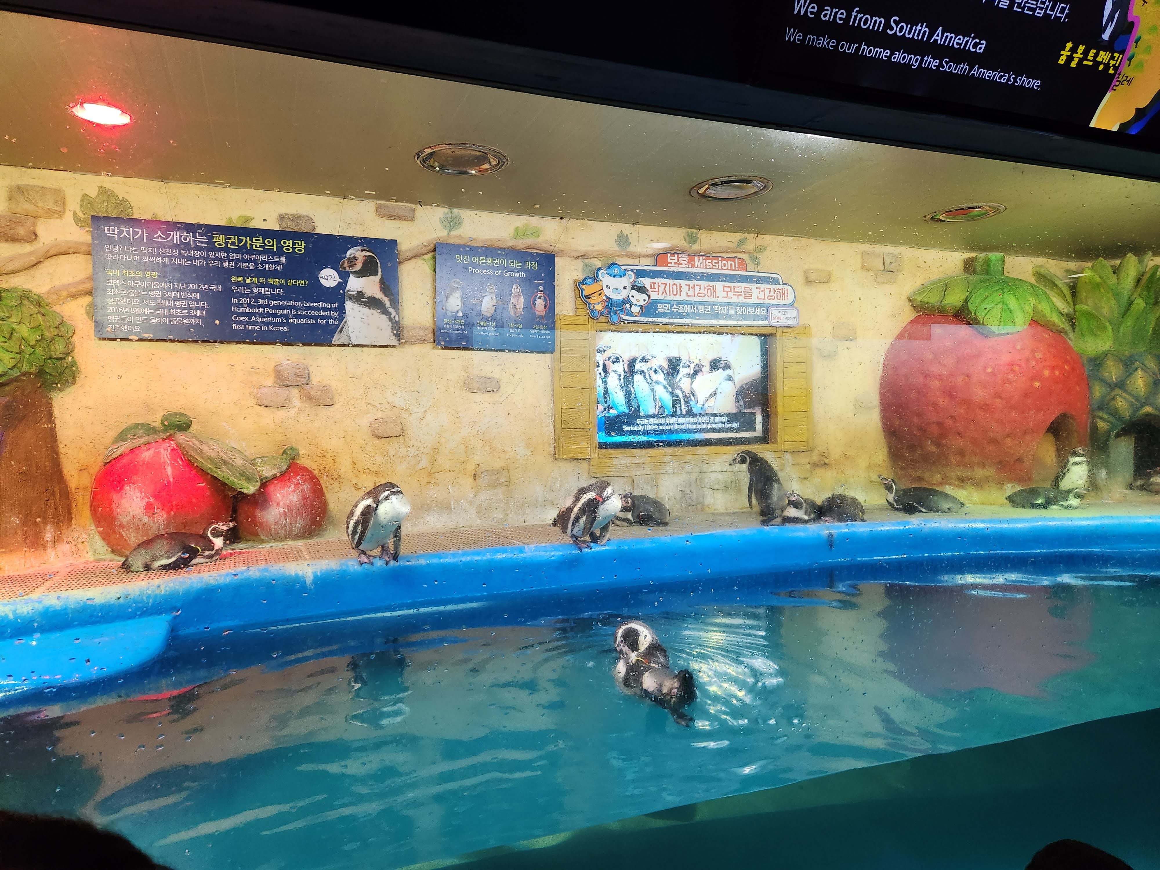아이가 좋아하는 펭귄도 볼 수 있습니다. 에버랜드의 펭귄은 가까이 있지 않아서 아이가 아쉬워했는데 여기서는 훨씬 가까이서 볼 수 있고 울음소리도 들어 볼 수 있었습니다.