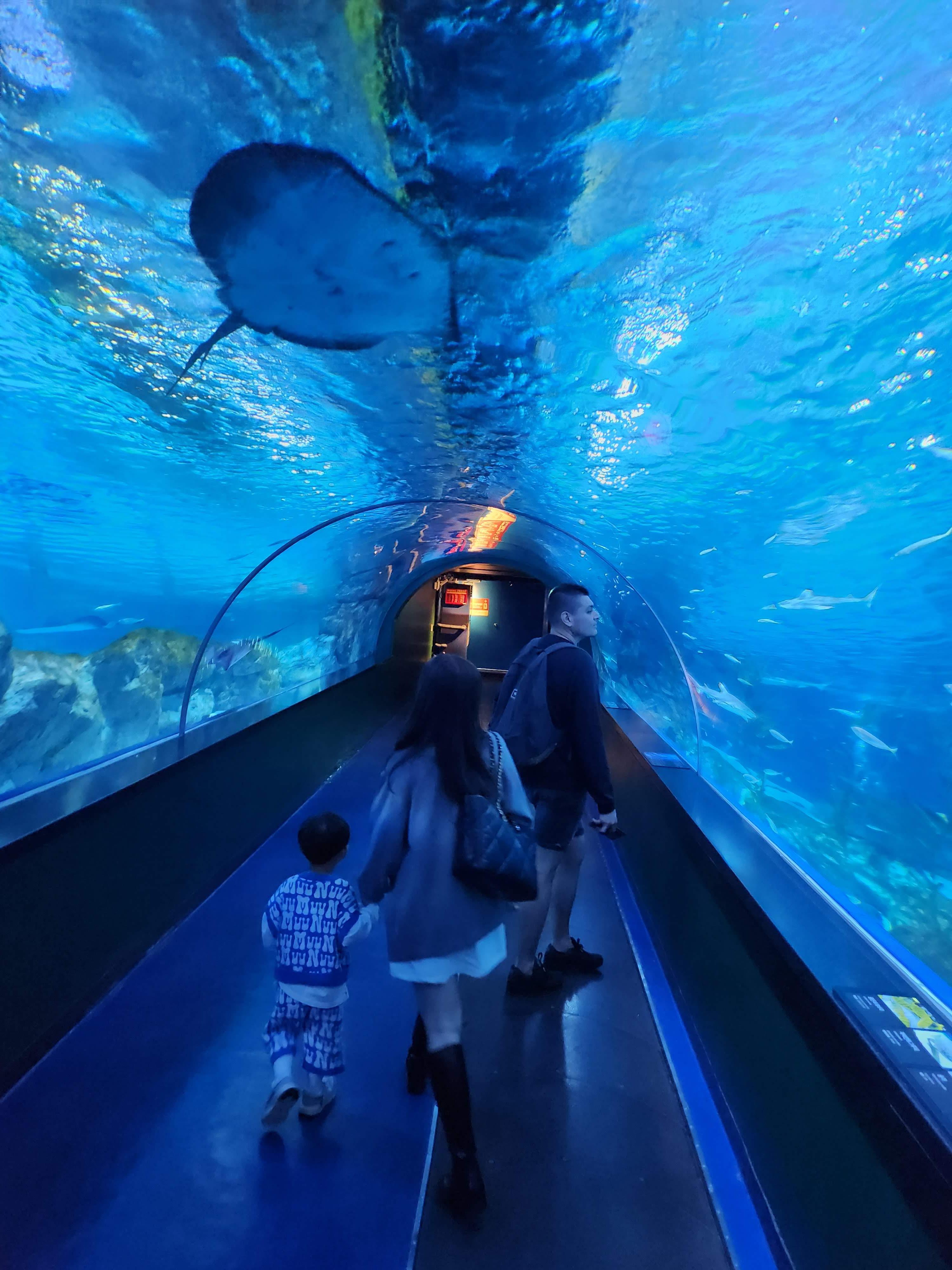 해저 터널을 지나 봅니다. 가오리가 지나가면서 가오리 배 부분도 볼 수 있었습니다.