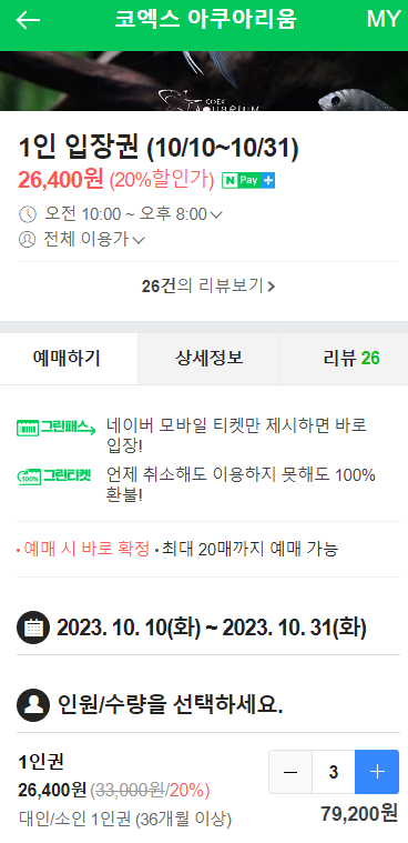 현재 네이버와 공식 사이트에서 입장권을 구매가 가능합니다. 저희는 어른 2명 아이 1명 총 3명이서 예약을 해서 갔습니다.