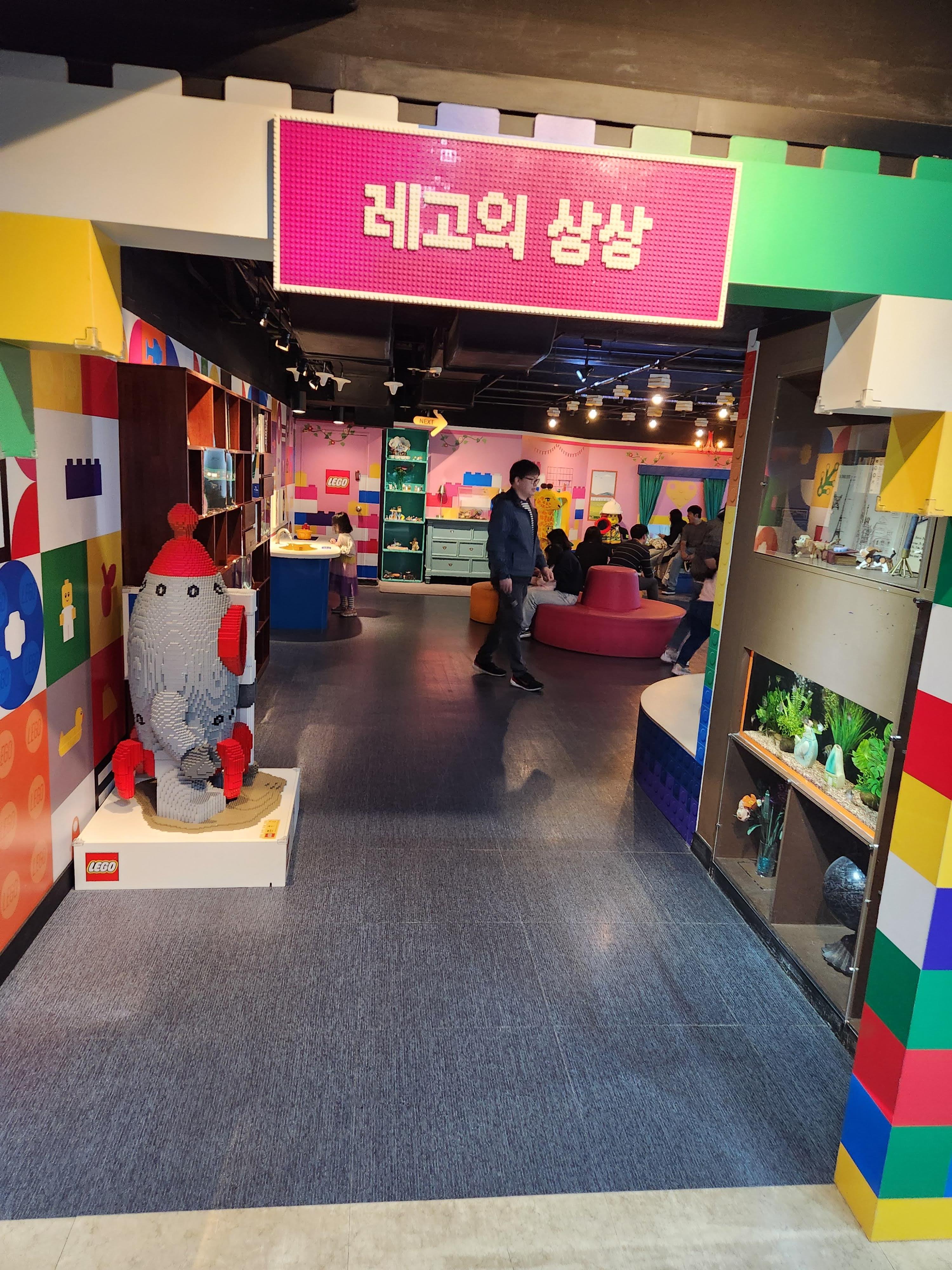또 하나 특이한 것이 작은 수족관들에 종종 레고가 들어 있어서 아이들의 상상력을 자극하는 것이었습니다. 레고 콘셉트와 옥토넛 콘셉트가 섞여서 알록달록한 느낌입니다.