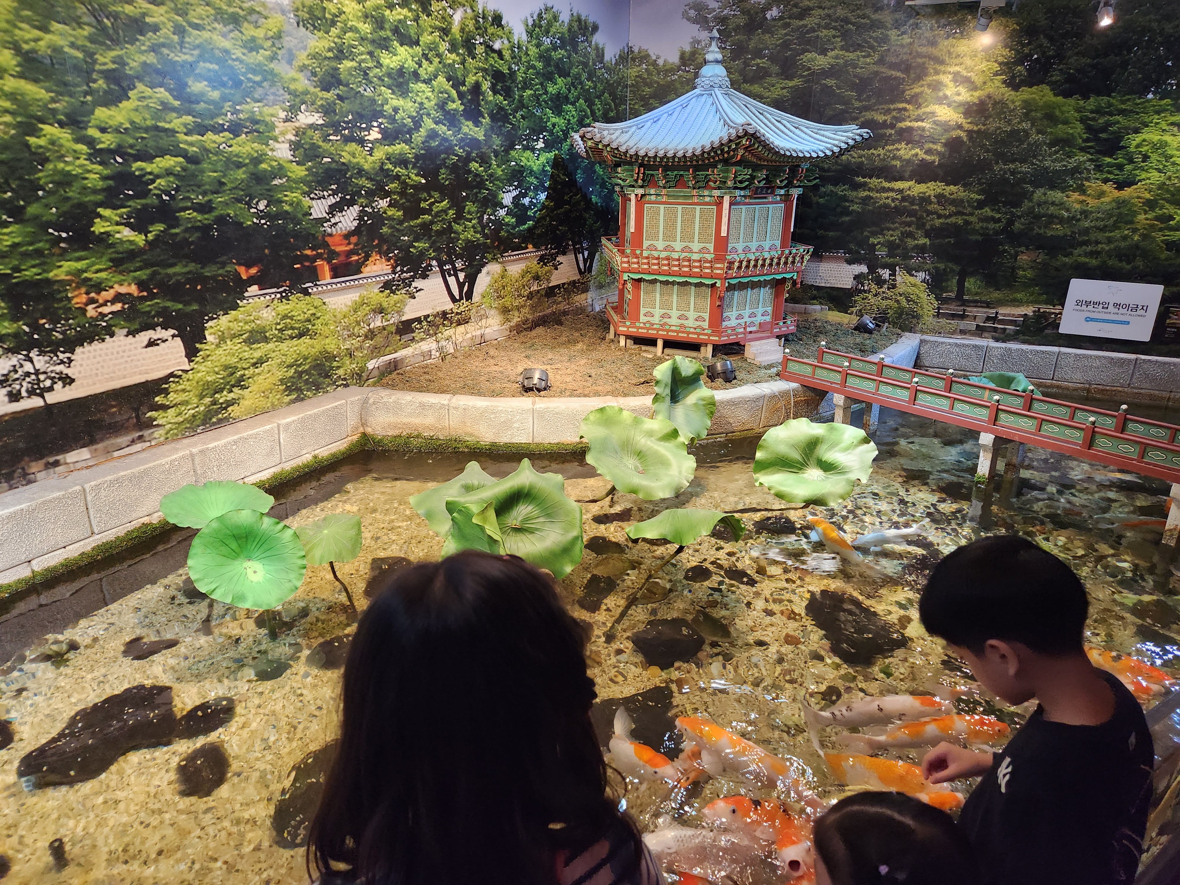 정원에서는 잉어의 먹이를 줄 수 있게 자판기도 있었습니다. 천원을 내고 자판기로 뽑는데 양이 너무 적긴 했습니다.