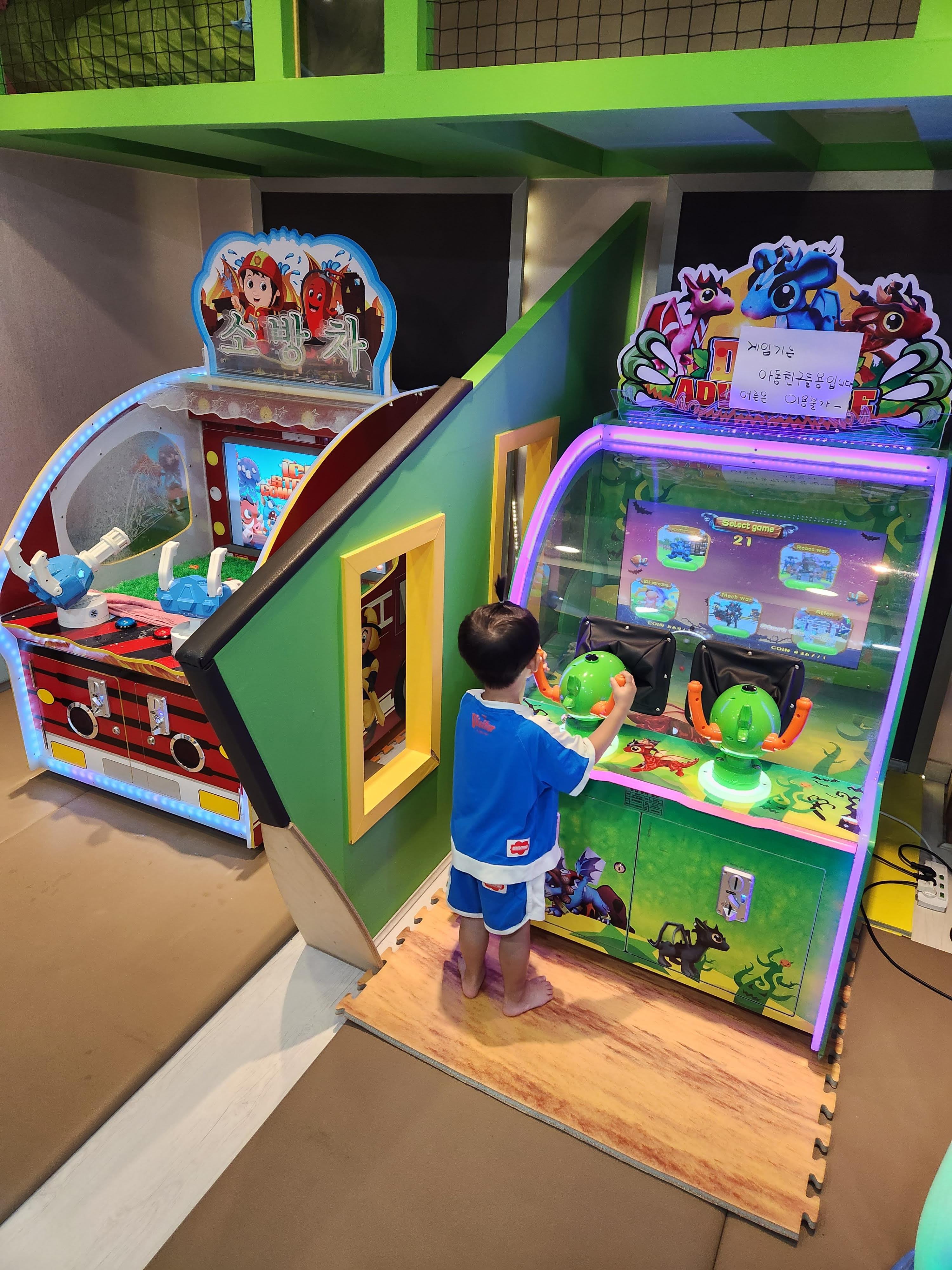 이외에도 각종 자동차나 탈 것이 많았고 모래놀이 시설, 볼풀장, 미끄럼틀과 같은 것들이 소소하게 다 구비되어 있었습니다. 어른들이 쉴 공간도 꽤 많았고 특히 패밀리룸도 저렴하게 프라이빗하게 이용할 수 있는 점도 좋았습니다.