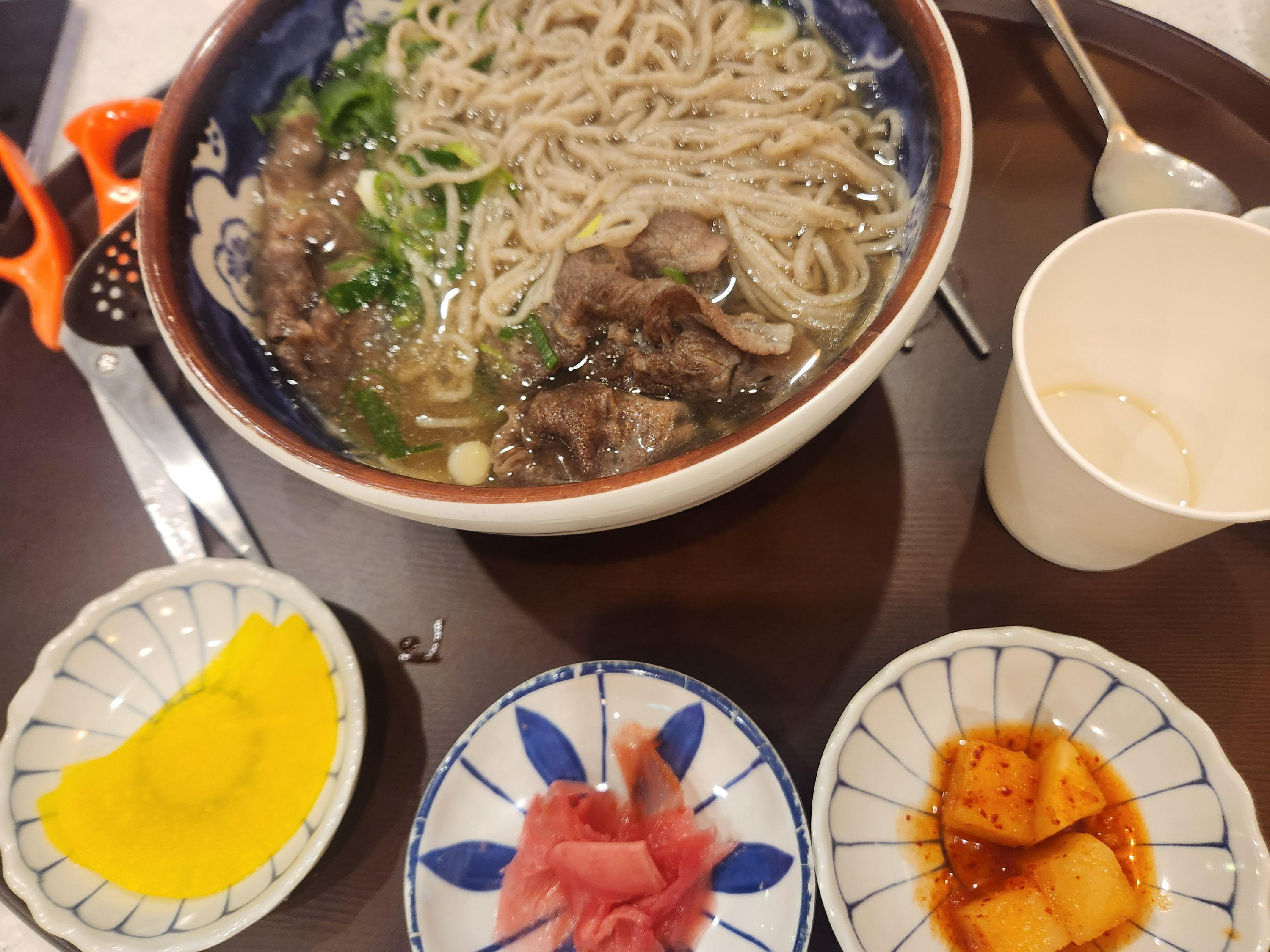 양이 아주 많았고 따뜻한 메밀소바면 위에 고기가 뜸뿍 얹어져 있었습니다.