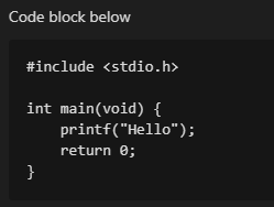 언어에 따라 c, cpp, java, bash 등과 같은 정보를 더 입력하면 상황에 맞게 더 보기 좋게 표시해준다. 아래 예시는 GitHub에서 cpp로 했을 때 달라지는 모습이다.