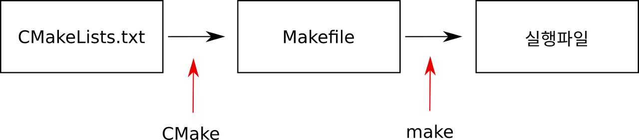 예를 들어 Make를 사용하여 빌드를 하는 경우, CMakeList.txt 내에 CMake 문법에 맞게 명령어들을 작성하고 CMake 프로그램을 실행하면 CMake가 CMakeList.txt에 정해진 대로 Makefile을 생성하고 사용자는 cmake 혹은 make 명령어를 통해 빌드할 수 있습니다.