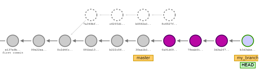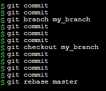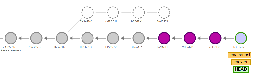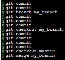위 예제를 보면 my_branch와 master branch가 있고, 두개가 쭉 commit이 쌓인 상황이다.