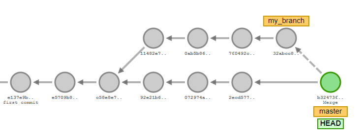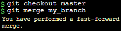 이때 git checkout master를 통해 master로 이동하고 git merge my_branch를 통해 master에서 Merge commit을 발생시켜 my_branch를 통합한다.