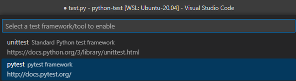 그러면 아래와 같이 2가지 unittest와 pytest가 뜨는데, 우리는 pytest를 해볼 것이니 pytest를 선택하면 된다.