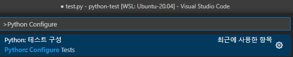 우선 VS Code에서 Ctrl+Shift+P 를 통해 Python Configure을 검색하여 Congigure Tests를 선택한다.