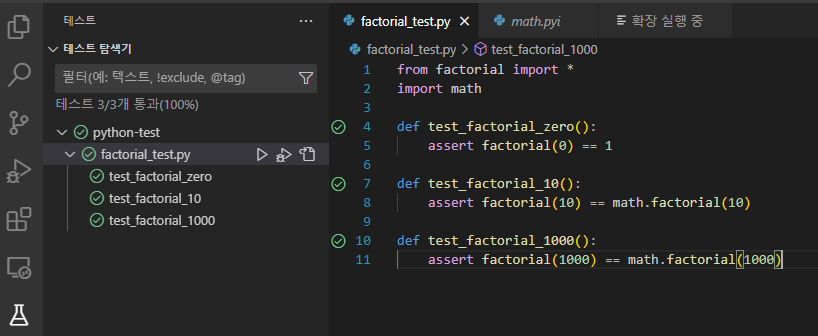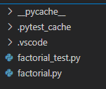 우선 나는 기존에 unittest 때에도 사용했던 factorial.py를 활용할 것이고 이를 테스트하는 test_factorial.py 파일을 만들었다.