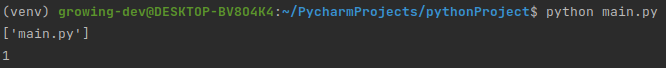 파이썬을 실행하면서 입력된 파라미터를 전달받아 활용할 수 있는 기능이다. argv를 출력하면 입력된 arguments를 list 형태로 저장하고 있다. 주의할 점은 항상 첫번째 argument는 실행하는 파일이다. 즉 내가 원하는 입력 argument는 그다음인 argv [1]부터 시작한다고 볼 수 있다.