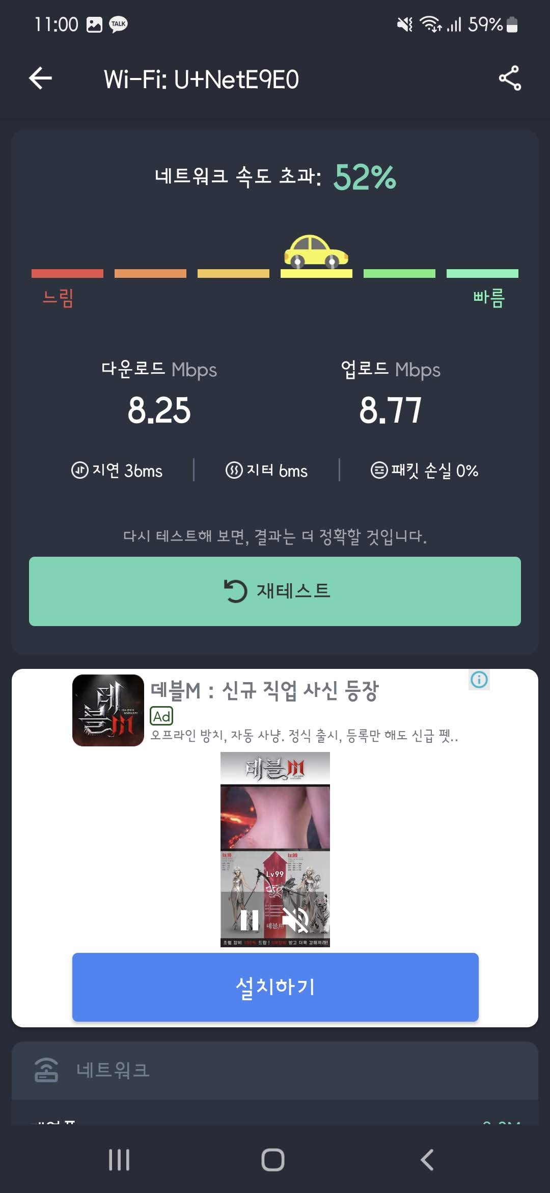 Wi-fi 속도 측정 앱을 켜서 속도를 측정해서 비교해 보았습니다.